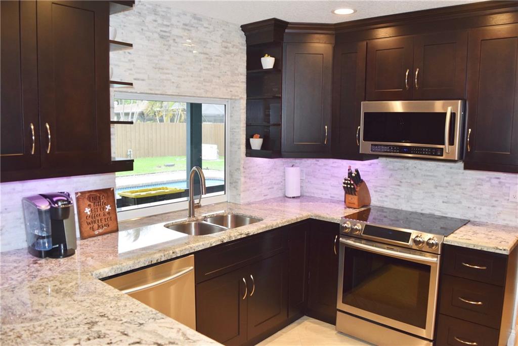 Beautiful pool home located in desirable Davie community. This home has been completely updated throughout...New open kitchen w/granite counters, s/s appliances lots of cabinets & counter space. Updated bathrooms. New flooring, crown molding, baseboards, & light fixtures. This amazing home offers hurricane windows & doors, a 22kw Genrac standby generator, new 500 gallon propane tank, new A/C handler w/UV light, carrier & vents throughout the home. Open & Specious floor plan offering living room, dining room, family room & covered & screened patio. Huge master bedroom (18x14) w/walk-in closet, gorgeous master bath w/spa tub. Backyard offers canal great for fishing, a lovely pool, patio & hurricane rated shed. Excellent schools, great location near highways, shopping, airport, & university.