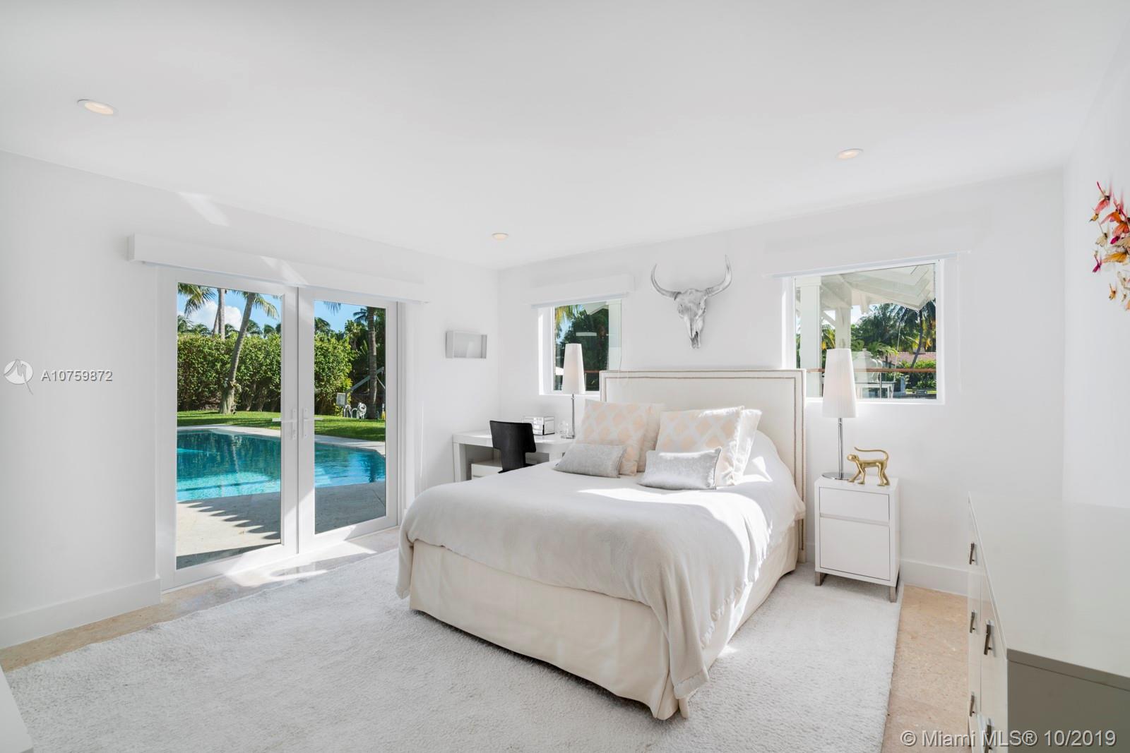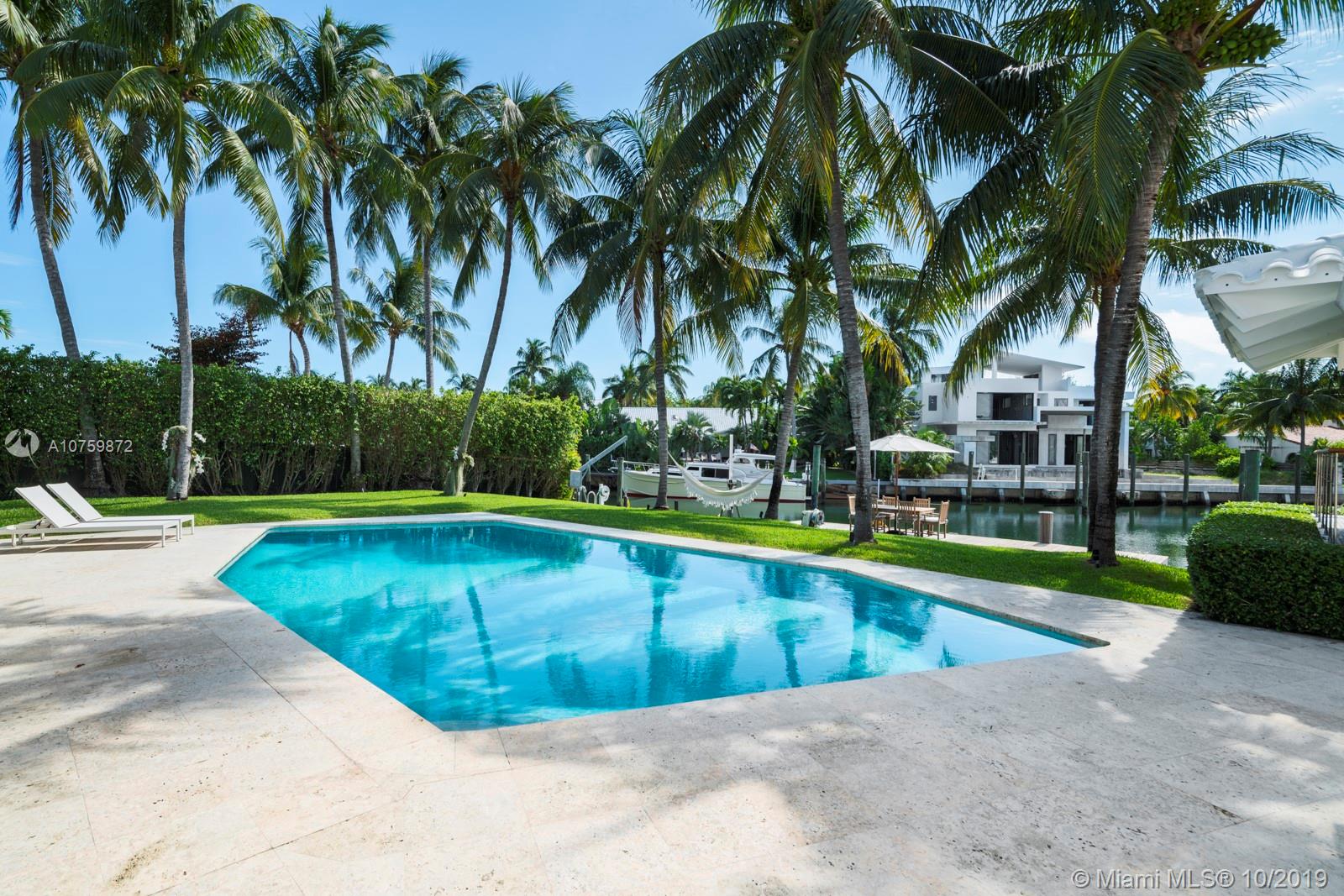 Stunning, magazine quality waterfront home on the exclusive & idyllic island of Key Biscayne. Enjoy water views from light-filled living spaces w/ soaring, vaulted wood-beamed ceilings, a striking white color palette & a modern vibe throughout. Updates include new: limestone flooring, spa-like baths, impact glass, interior & exterior Sonos sound system, new dock w/adjoining floating dock & new stone terrace & pool deck. European-style kitchen features black granite countertops, Viking appliances & breakfast area. Lush, tropical garden surrounds the resort-like outdoor space that offers an expansive covered terrace, pool & gazebo w/ spectacular sunset views. Protected, private dock w/davits & no bridges to the bay. Direct ocean access, 180’ turning basin at the head of the canal.