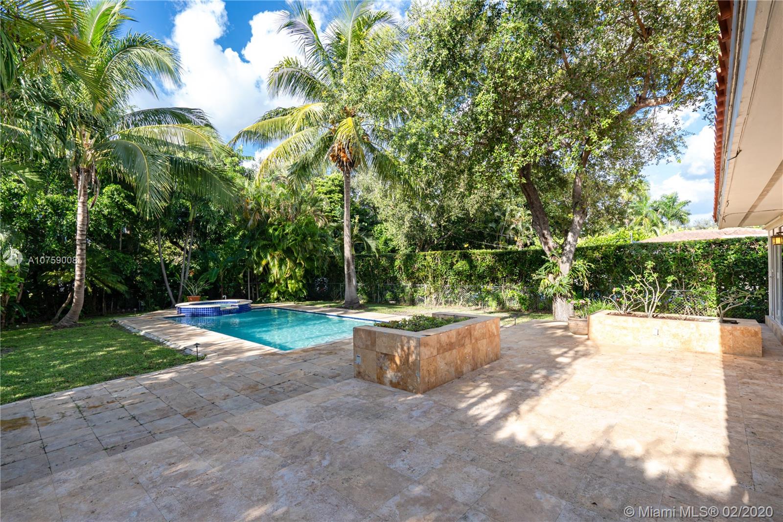 Gorgeous Coral Gables home with newly installed impact windows on an oversized 14,263 SF lot. This residence offers a spacious, light-filled floor plan with an open roof courtyard, oversized master bedroom with direct access to the pool area and three additional bedrooms with en-suite bathrooms. The kitchen offers a chef style gas range, wine cooler and extra storage custom made cabinetry. Huge backyard with oversized pool, which feels like a tropical oasis!!