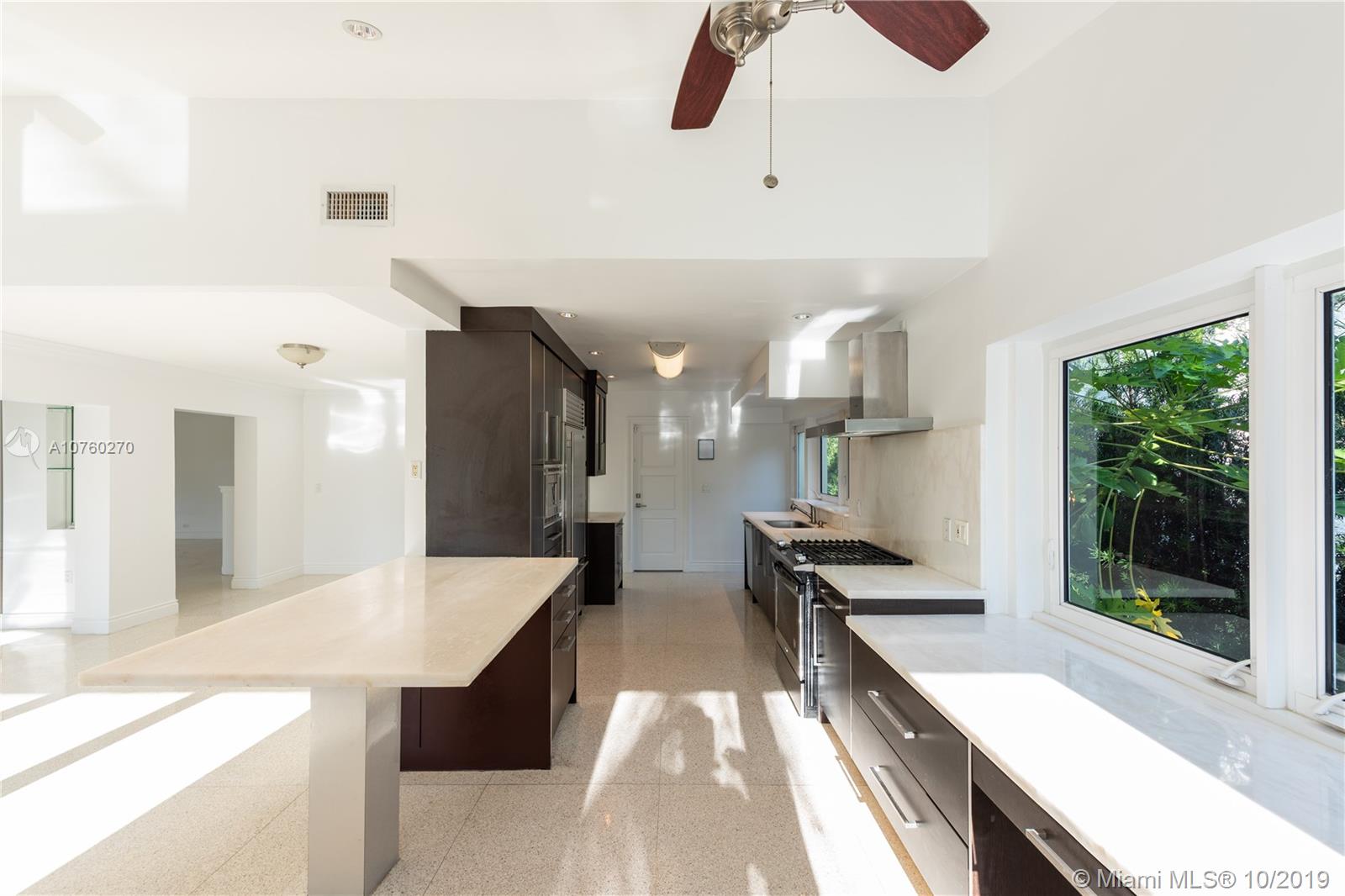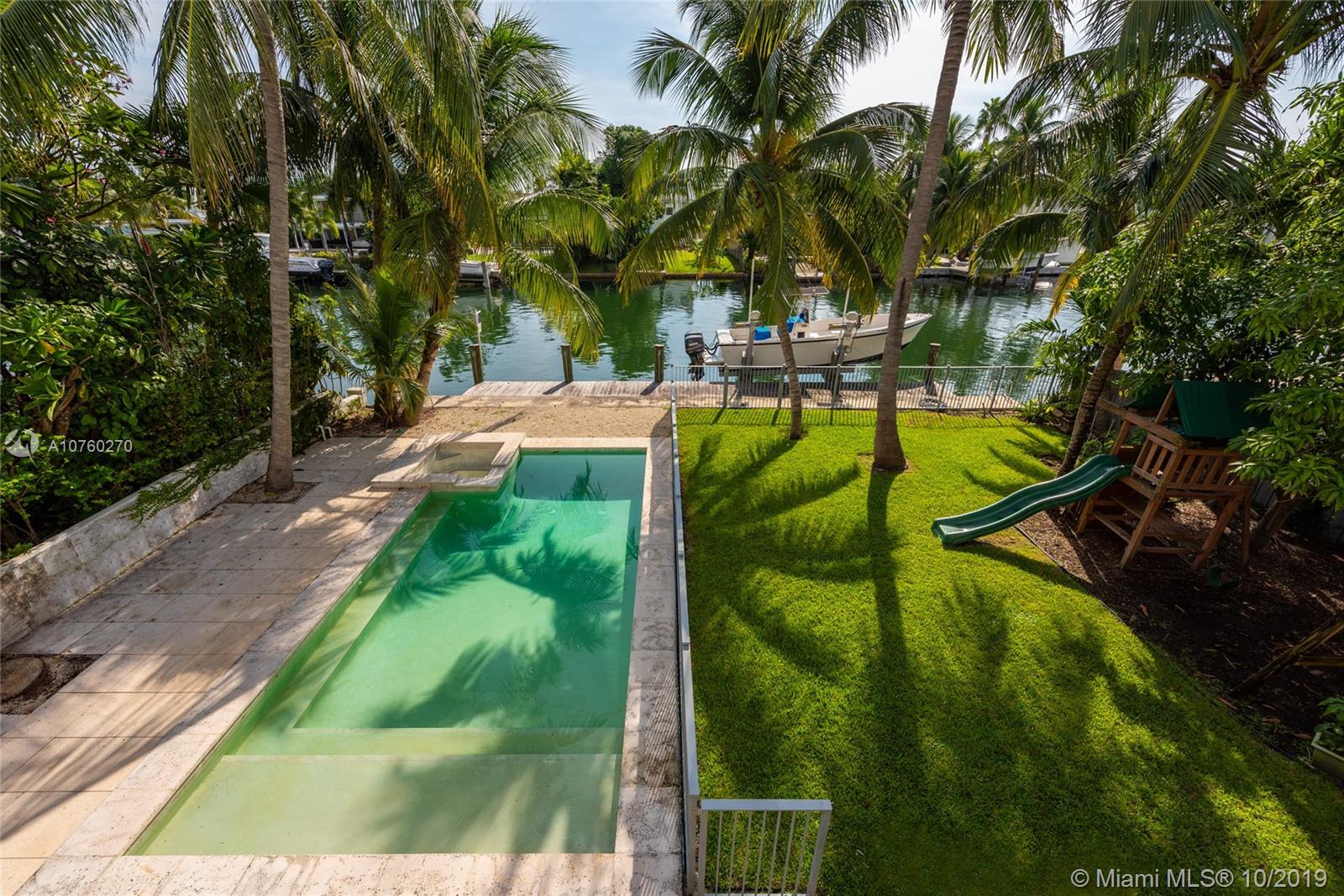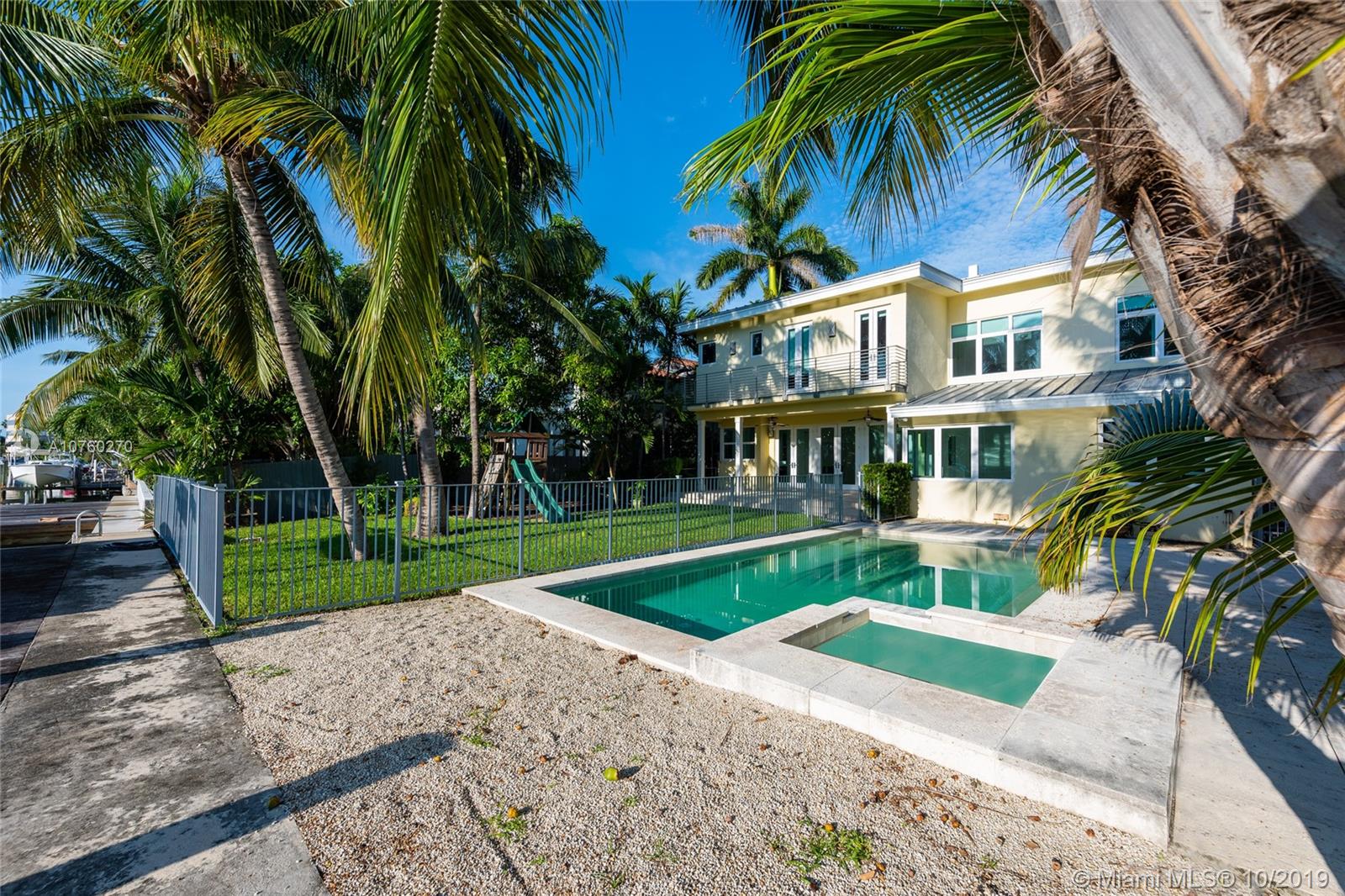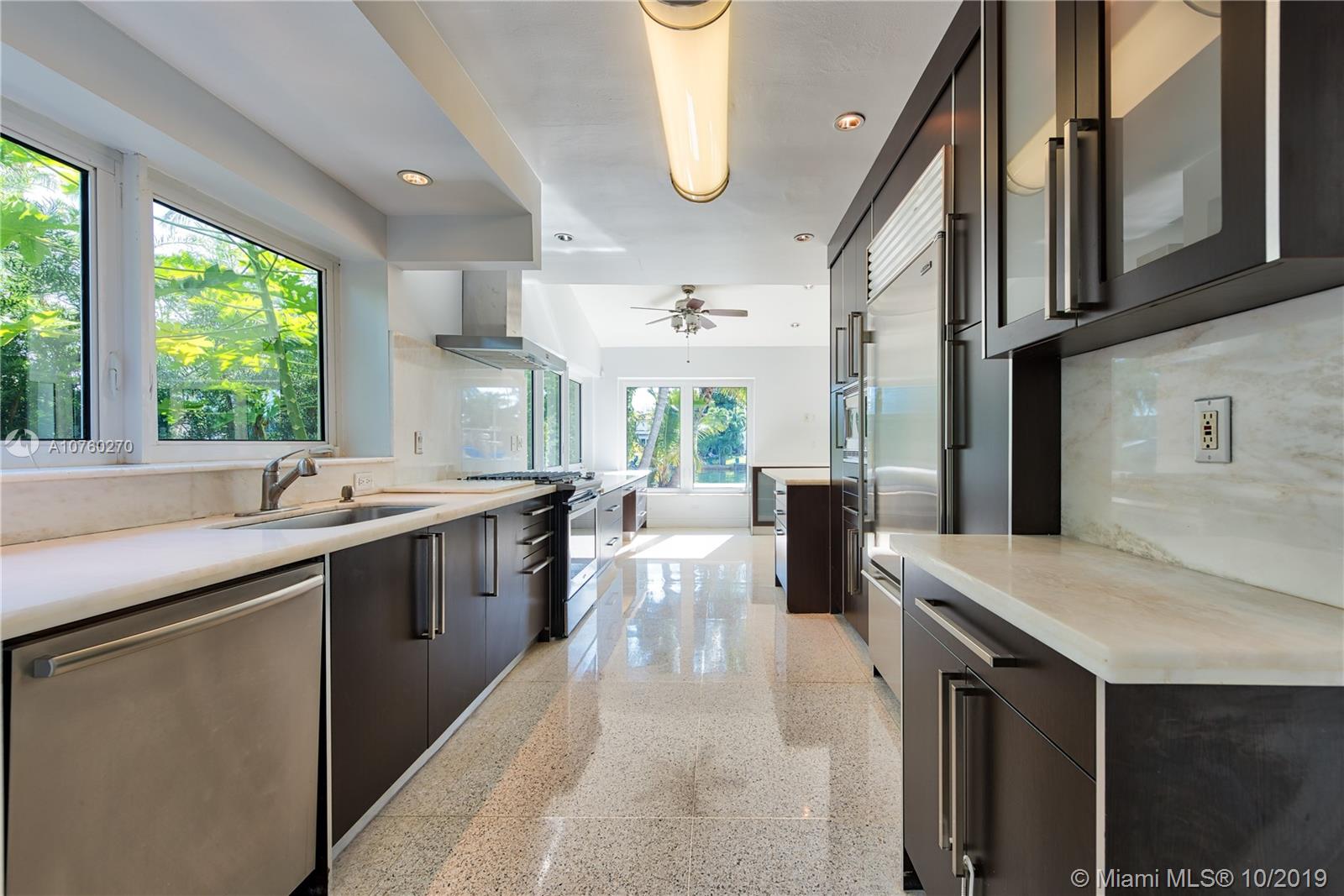 Gated entry welcomes you to this bright, airy, and open 4 bedroom, 5 bath waterfront home. Formal foyer, terrazzo floors and hardwood floors, fireplace, volume ceilings, and impact windows and doors are some of the features of this updated modernized home with deco inspired architecture. Wonderful floor plan highlighting an updated eat in kitchen with top of the line appliances, 3 bedrooms upstairs and an expanded master suite with 2 walk in closets and new master bath. Oversized lot with outside patio, beautiful pool and spa, dock and boat lift. Come and enjoy, easy to show.