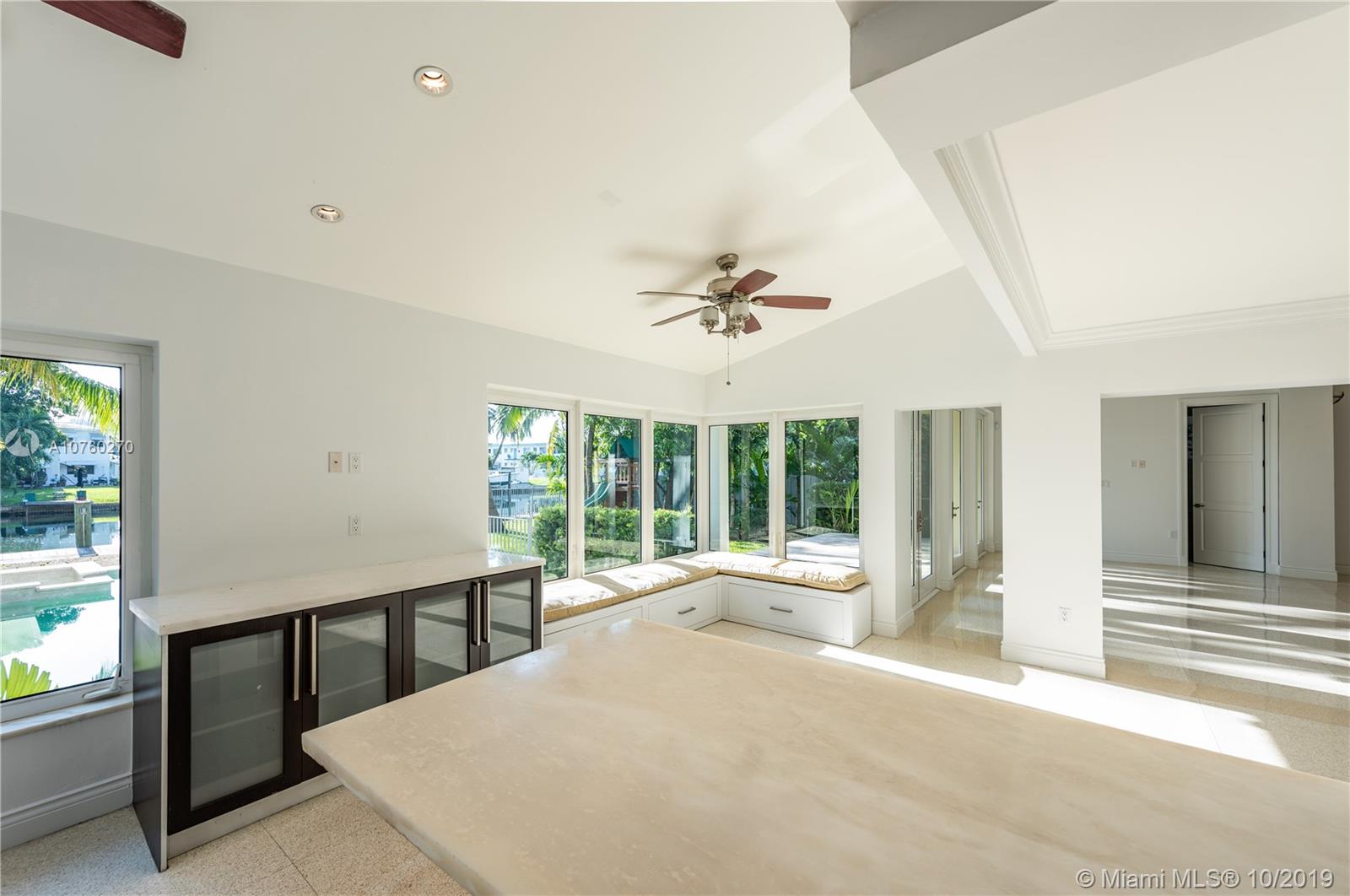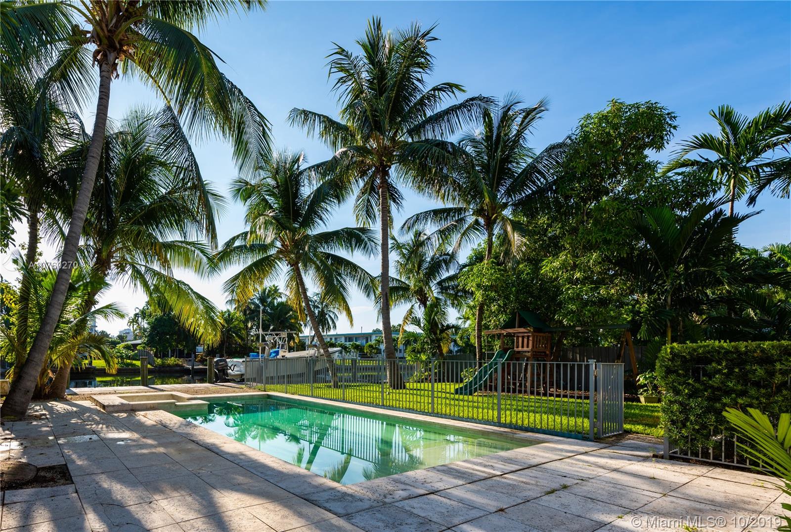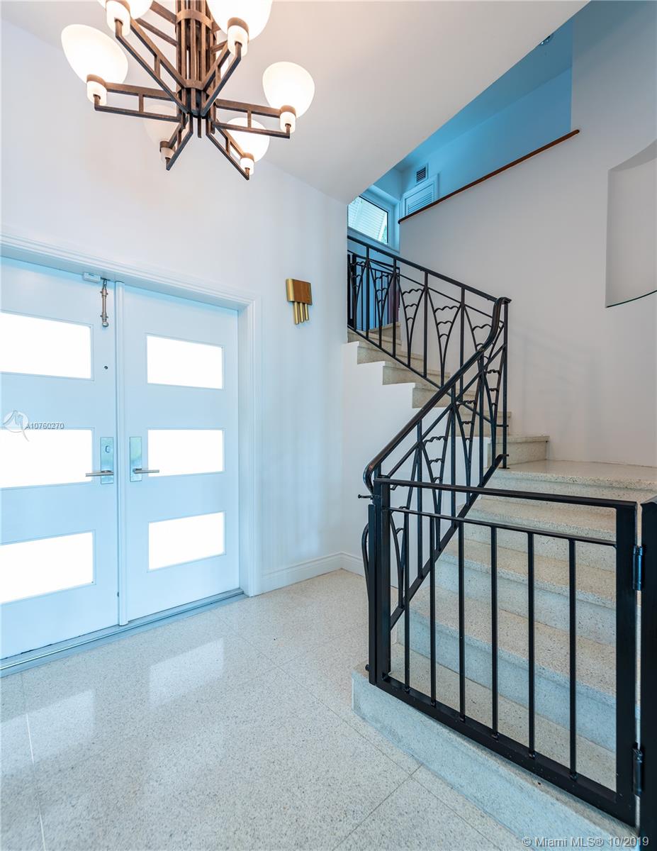 Gated entry welcomes you to this bright, airy, and open 4 bedroom, 5 bath waterfront home. Formal foyer, terrazzo floors and hardwood floors, fireplace, volume ceilings, and impact windows and doors are some of the features of this updated modernized home with deco inspired architecture. Wonderful floor plan highlighting an updated eat in kitchen with top of the line appliances, 3 bedrooms upstairs and an expanded master suite with 2 walk in closets and new master bath. Oversized lot with outside patio, beautiful pool and spa, dock and boat lift. Come and enjoy, easy to show.