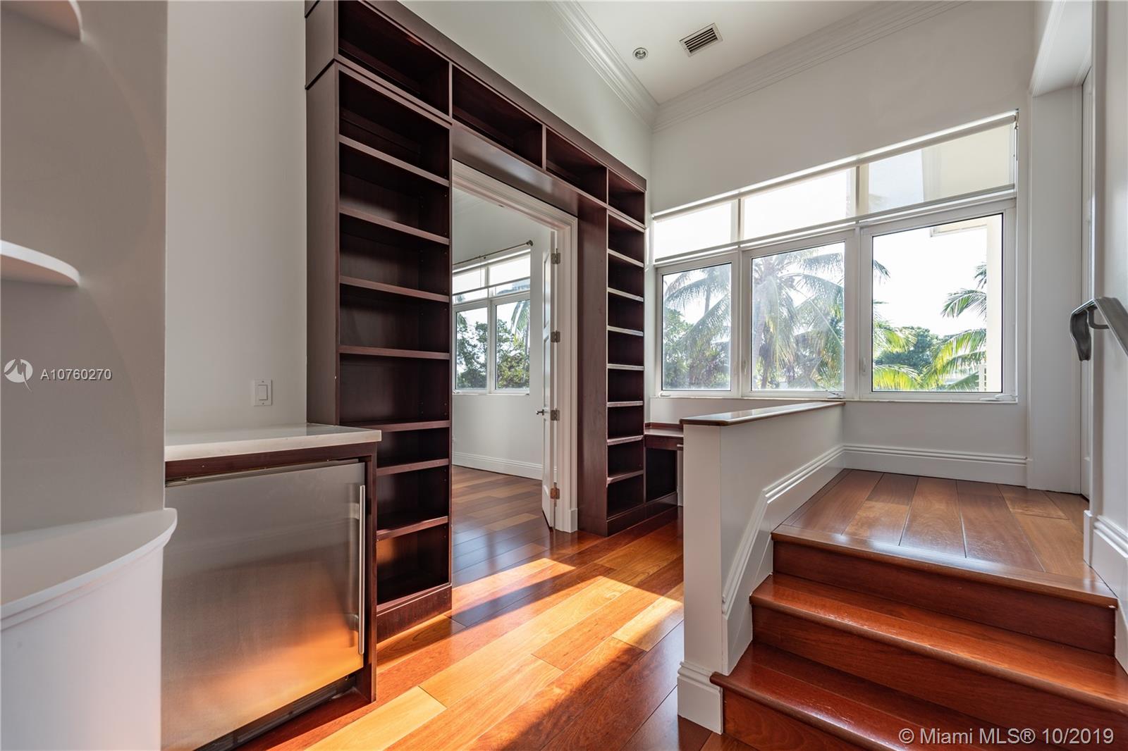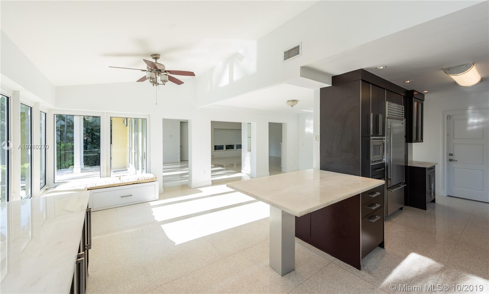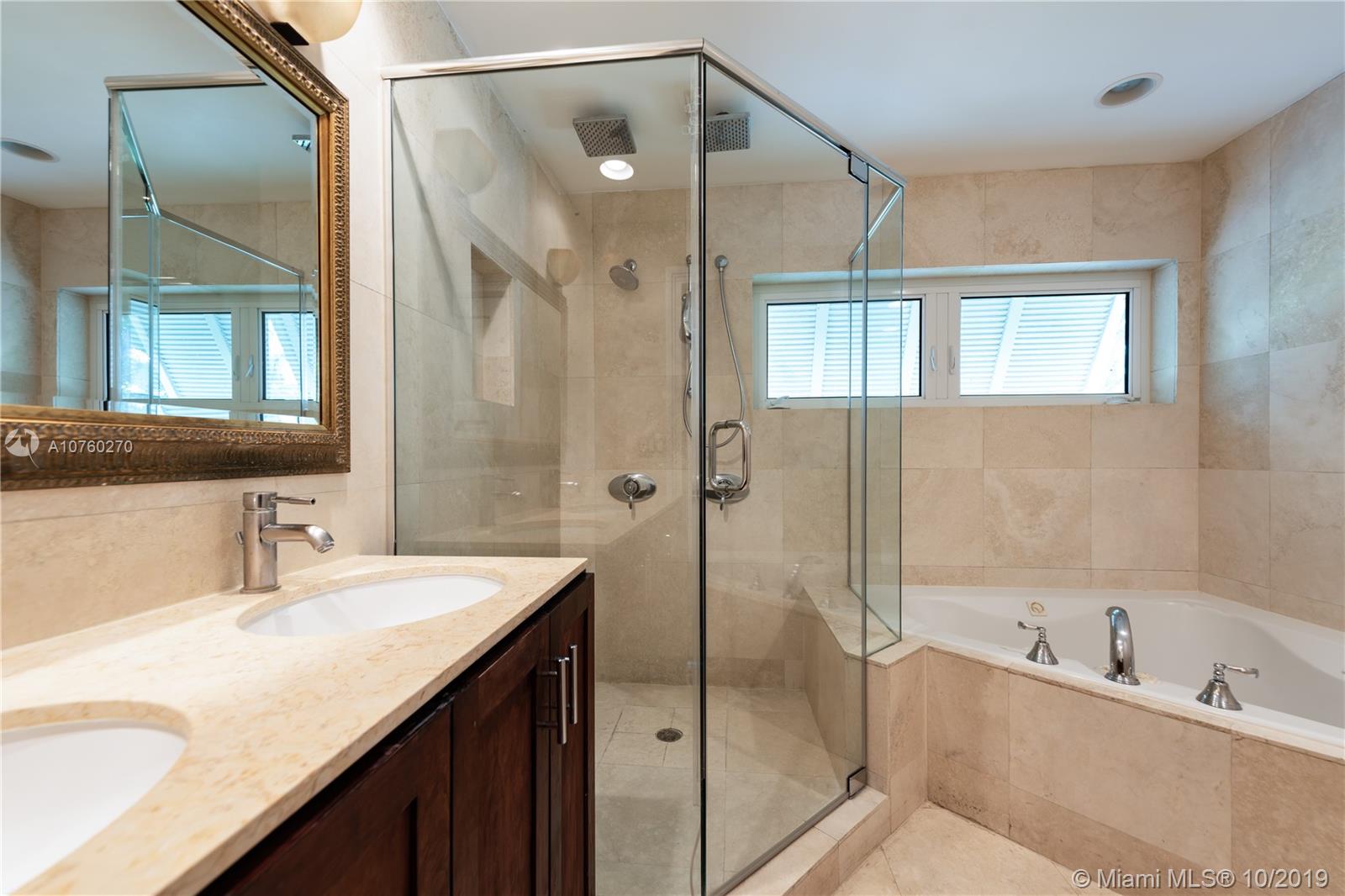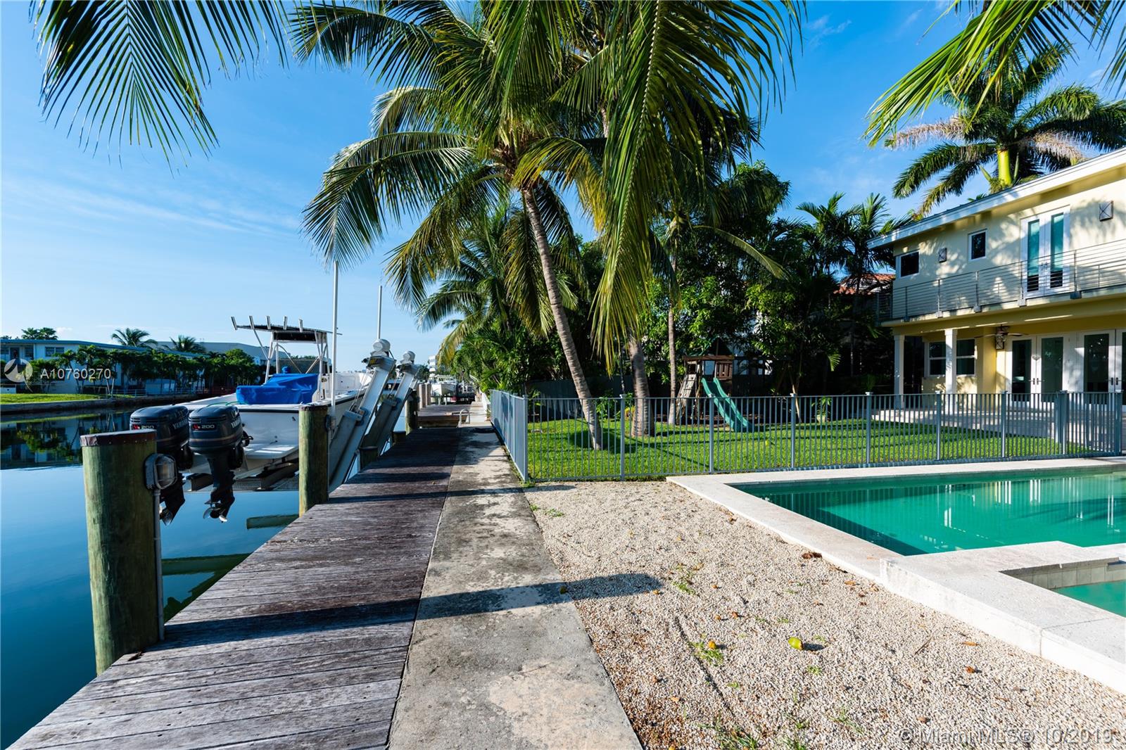Gated entry welcomes you to this bright, airy, and open 4 bedroom, 5 bath waterfront home. Formal foyer, terrazzo floors and hardwood floors, fireplace, volume ceilings, and impact windows and doors are some of the features of this updated modernized home with deco inspired architecture. Wonderful floor plan highlighting an updated eat in kitchen with top of the line appliances, 3 bedrooms upstairs and an expanded master suite with 2 walk in closets and new master bath. Oversized lot with outside patio, beautiful pool and spa, dock and boat lift. Come and enjoy, easy to show.