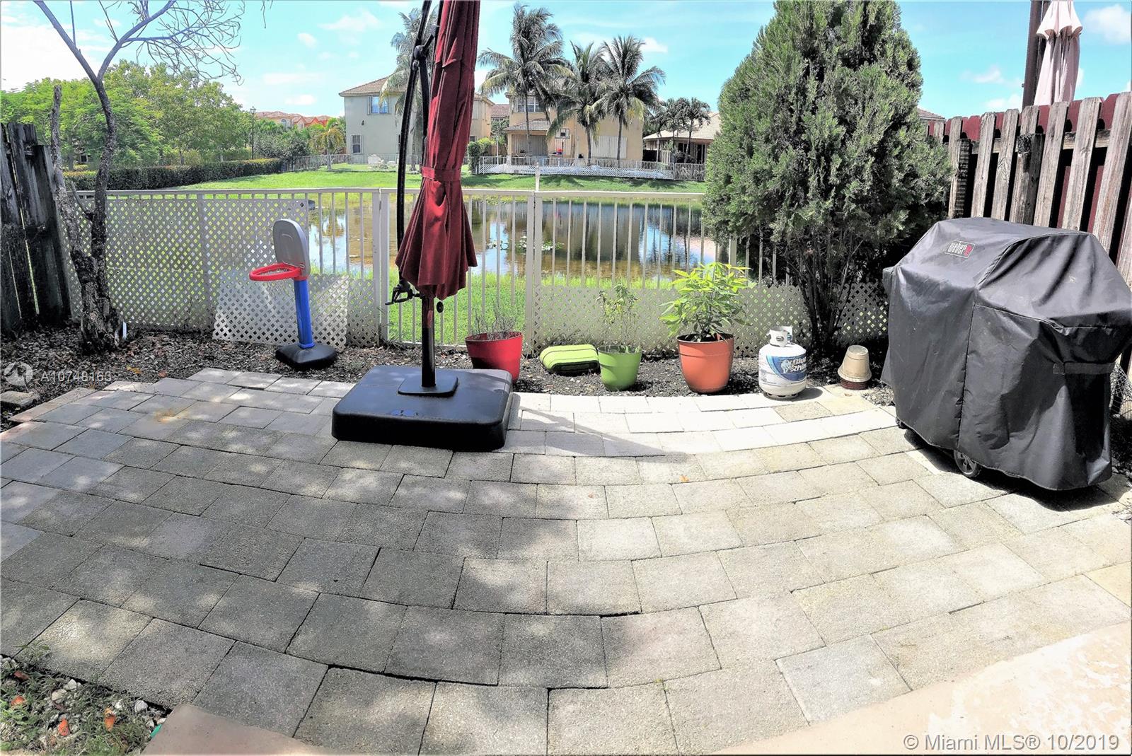 PRICED TO SELL, COZY TOWNHOUSE 3 BEDS, 2.5 BATHS. TILES DOWNSTAIRS ON LIVING, DINING, FAMILY ROOM AND KITCHEN; BRAND-NEW STAINLESS-STEEL APPLIANCES WITH 3 DOORS FRIDGE AND GRANITE COUNTER TOP. CARPET UPSTAIRS, QUITE MASTER BEDROOM WITH WALKING CLOSET AND WATER VIEW; CONVENIENT WASHER & DRYER ON 2ND FLOOR. ACCORDION SHUTTERS ALL OVER, FENCED TERRACE YARD OVERVIEW LAKE FRONT TO BBQ AND RELAXING WITH SOUTH FLORIDA SUNSET; 24-HOUR SECURITY, ALARM SYSTEM; FAMILY ORIENTED COMMUNITY WITH MANY AMENITIES INCLUDING: WALKING DISTANCE SWIMMING POOL, KID’S PLAYGROUND AND CLUBHOUSE WITH FITNESS CENTER, GAME ROOM, TENNIS AND BASKETBALL COURT, PING PONG TABLES AND GYM. A+ SCHOOL NEARBY, CLOSE TO STORES AND SHOPPING PLAZA INCLUDING FAST FOOD, GOURMET COFFEE AND PUBLIX, CONVENIENT ACCESS TO MAYOR HIGHWAYS.