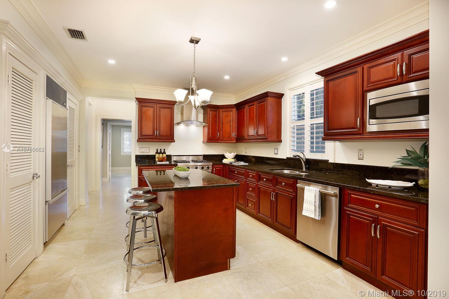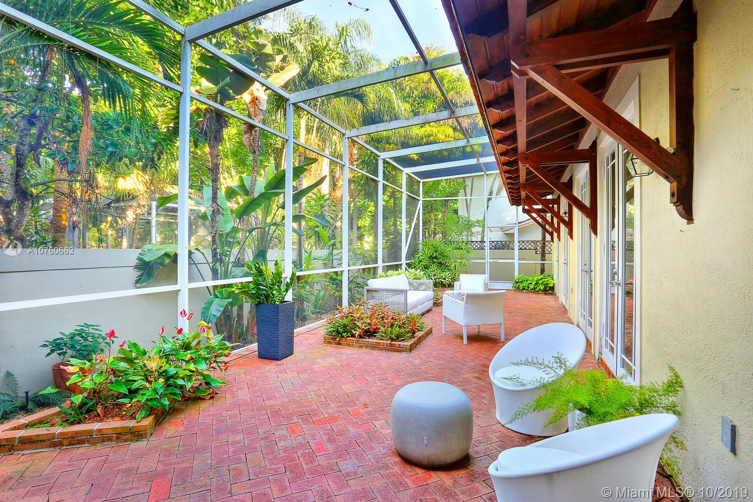Lovely,walled & gated home on an ultra-quiet, tree-canopied S. Grove street. Light-filled living spaces feature volume ceilings, fireplace and stone & wood flooring. Elegant foyer leads into formal living, dining & family rooms w/California shutters & a neutral color palette. Stunning, renovated kitchen features wood cabinetry, Subzero & Bosch appliances as well as a Viking gas range, center island w/seating & separate breakfast area. Home updates include: new roof & all impact glass. French doors throughout the home open to the lush tropical garden and screened, bricked terrace for outdoor living & entertaining. Expansive master suite offers a sitting area, 2 walk-in closets and a luxurious marble bath w/soaking tub & frameless glass shower. Walking distance to the Grove village center.