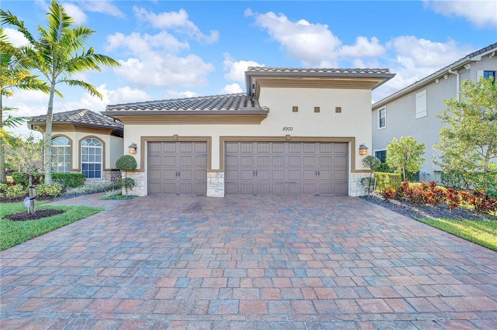 Stunning 1-story 4 bedrooms 3 bath with a 3 car garage almost 3000Sq.Ft. all on one level, Cumberland model home in exclusive guard gated community Miralago. Double door entry to an open floor plan with a split layout. Master bedroom with over sized sitting area, dual walk-ins and dual sinks in the master bathroom. Kitchen has granite countertops, stainless steel appliances, gas cook top with 42" cabinets. The community has a 5 STAR amenities including resort style pool, fitness center, ballroom, spa, tennis, basketball. Spectacular School Zone. HOA fee includes lawn care and landscaping, security guard, property exterior water and irrigation system service.