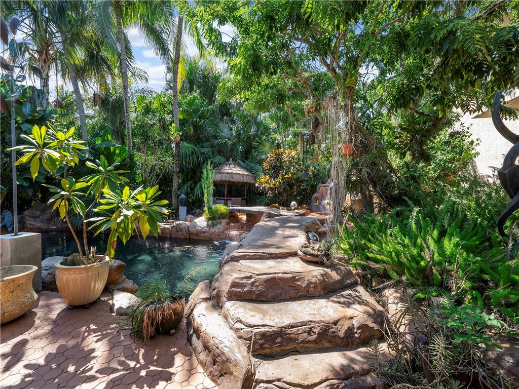 You will be swept away when you enter this exceptional resort-style residence situated on an oversized lot in Coral Ridge Country Club. This outstanding home features stunning indoor living spaces that flow seamlessly to an outdoor paradise. Throughout the residence you will find luxurious living area designed for comfort and entertainment. Superior finishes, chef's kitchen, split bedroom floor plan, custom closets, media/home theater room, impact windows and doors, and custom a/c garage. Outside boasts a tropical pool paradise with waterfalls, heated pool, hot tub, tiki bar, grill and intimate walkways with lush landscape filled with exotic orchids. The two-story guest residence with separate entrance is not to be missed! This impeccable estate home is priced to sell. See it today!