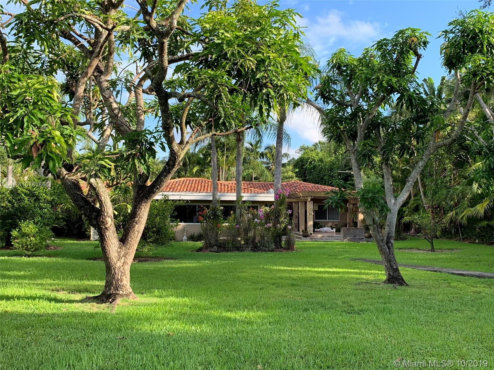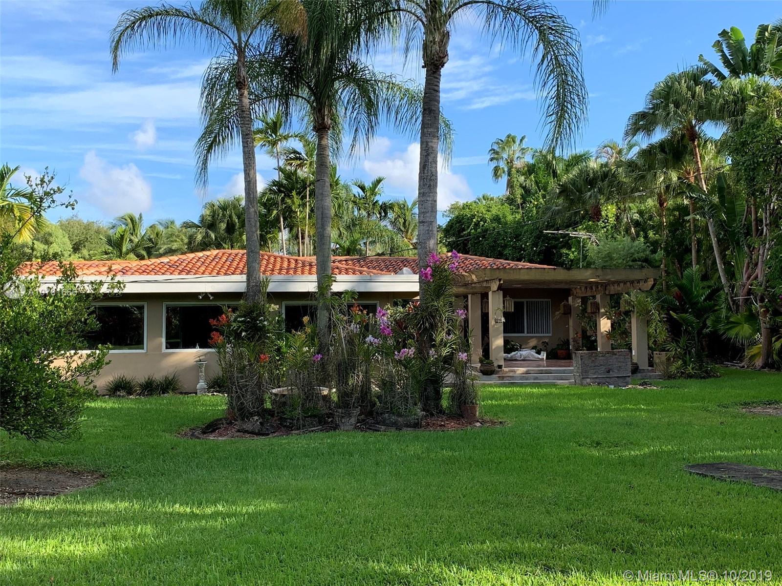 Beautiful FULL ACRE property located in central Pinecrest. This property has clean boundaries and landscaping that has been well manicured, offering fabulous and endless opportunities to rebuild or add to existing property. Backyard has a beautiful Pergola that has been surrounded by beautiful orchids and mature fruit bearing mango trees. Existing house has 3 bedrooms /2 bathrooms with a beautiful family room with picture windows all around. House has been completely updated with impact windows. Top ranked Palmetto school district.