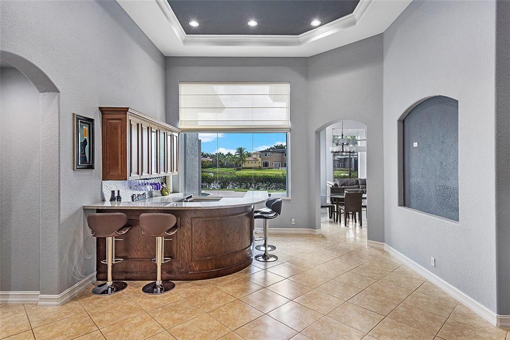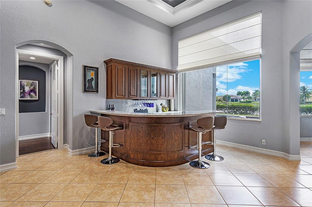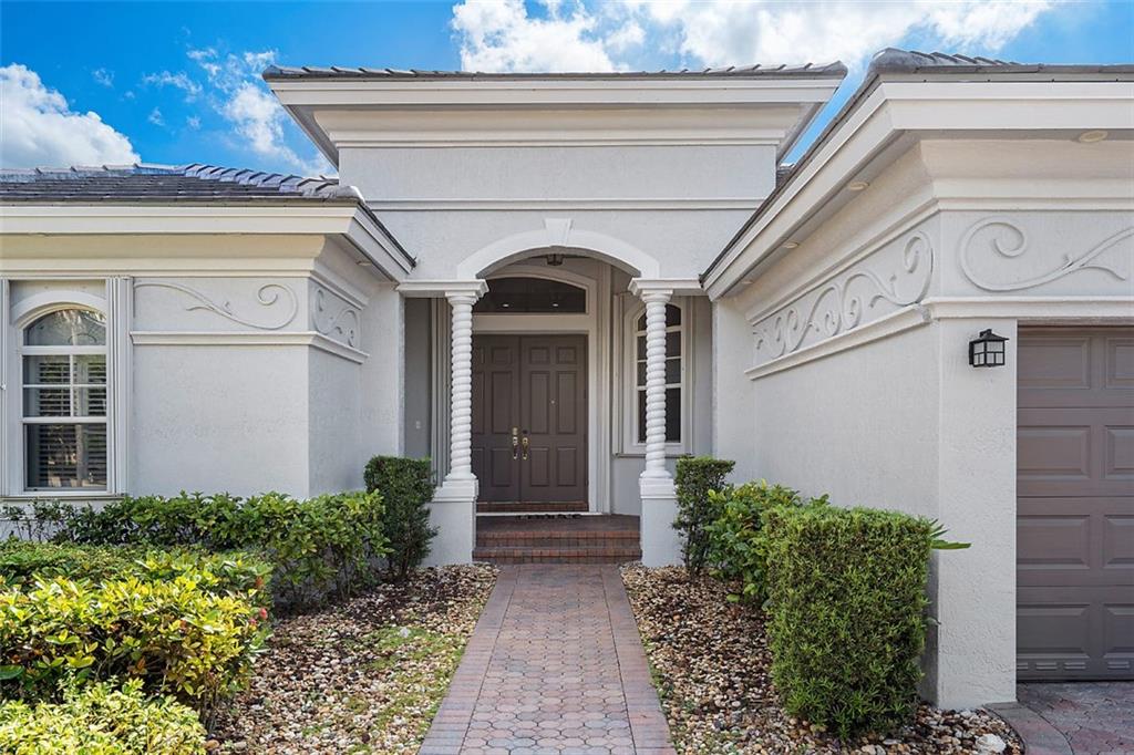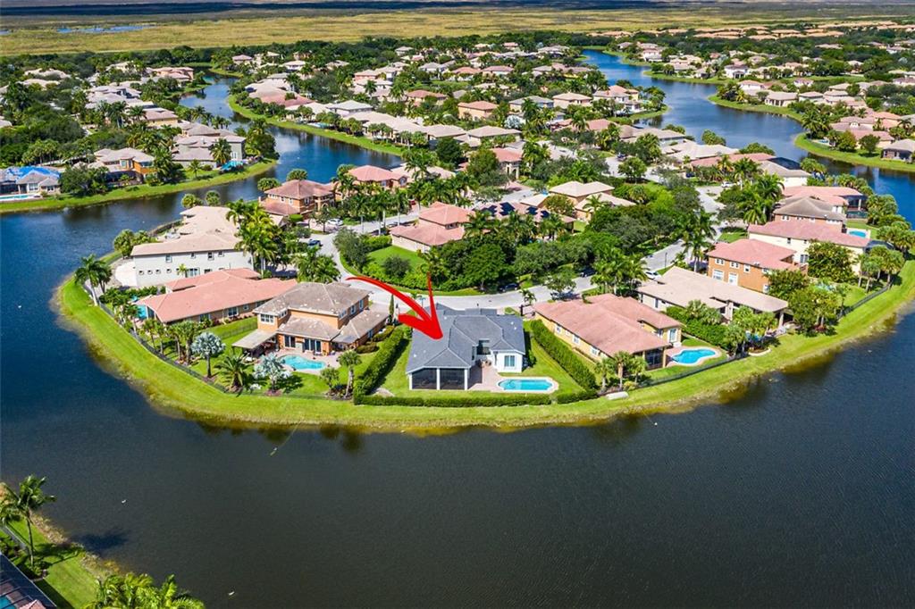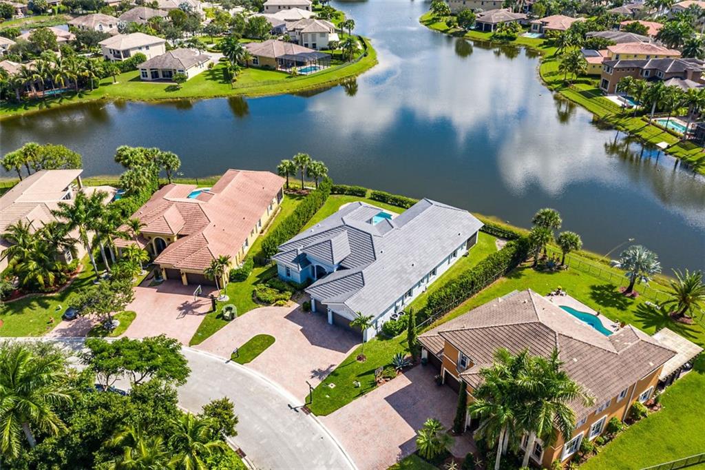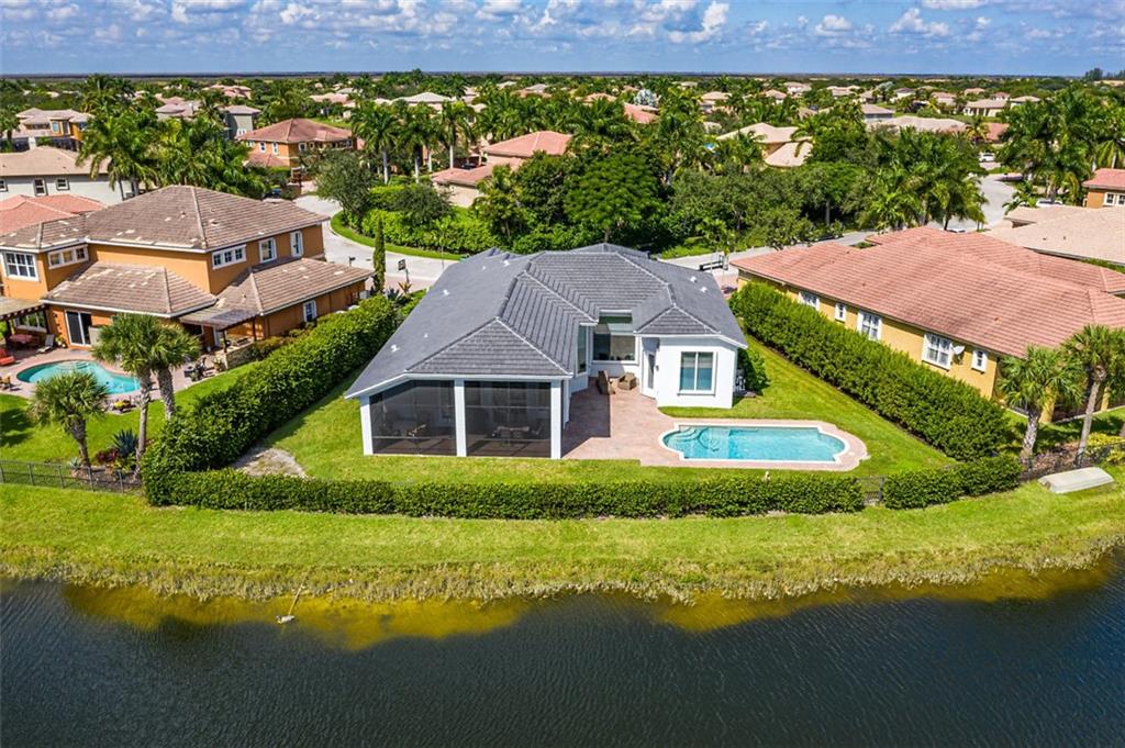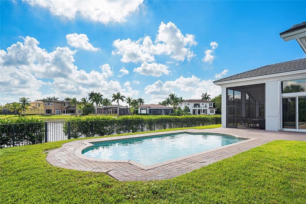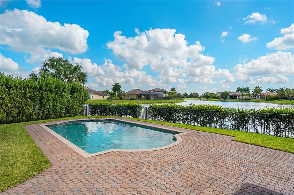 This stunning home with a 2019 ROOF is situated on a large, point waterfront lot. Enjoy breathtaking long & wide views of the waterways (see pics) & then the golf course beyond. Crisp white kitchen w/quartz counters, granite sink basin, newer SS appliances including a gas 5 burner stove! This Fabulous home w/an open & triple split design offers: 5 big & true bedrooms, heated pool, large patio, huge yard for the children to play, porcelain tile in main areas, wood like tile in bedrooms, custom built bar, 2 newer A/Cs, tankless gas water heater, freshly painted interior & exterior, new pool pump, gas hookups for an outdoor kitchen, accordion shutters, large laundry room, a new WiFi 2-car garage door opener & World Class Amenities! Enjoy Resort Style Living in the VISTAS of Heron Bay