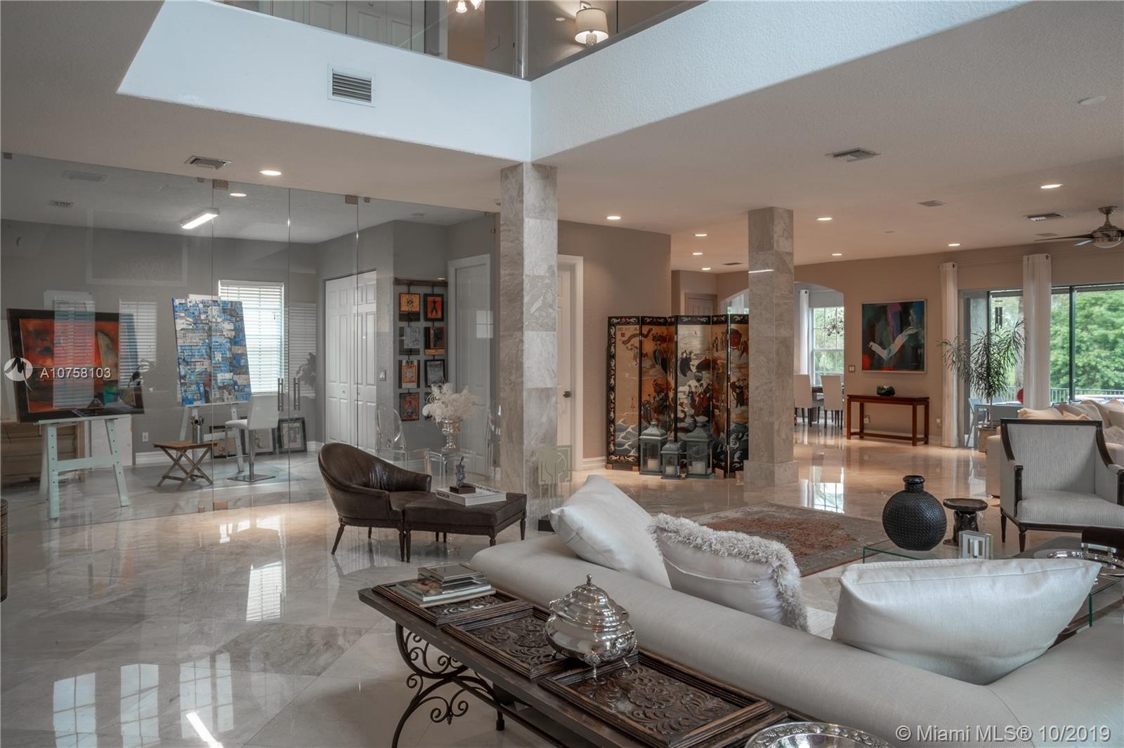 Amazing opportunity to own this 5 bedroom/3 bath/2 car garage in the EXPANDED ST. JOHN FLOOR PLAN. Walk into exquisite marble floors and marble wrapped columns, volume ceilings, spectacular views through wall of glass sliders. Unique glass enclosed bedroom with bathroom on 1st floor could be an office/playroom/home gym, etc. Entertain in this open concept chef’s kitchen with granite counters and SS appliances. Serve your family/guests in the dining room with sensational backyard views. You’ll be impressed with the glass panel surround around the upstairs loft area. Master suite has His and Hers walk in California closets and large en suite. ALL bedrooms have California Closets. Lounge on your screened in patio or step out to your pool to soak up the sun. Ask about all the upgrades!
