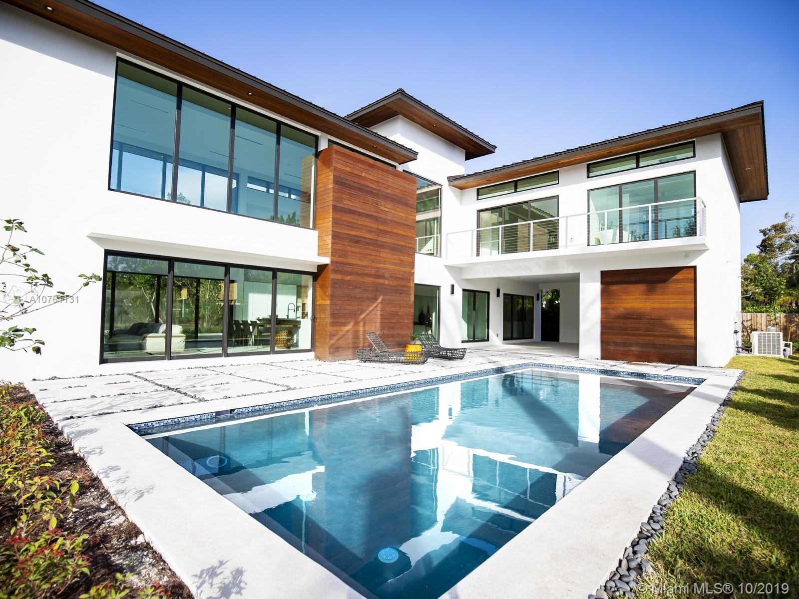New Construction corner estate, offering modern architecture in N. Pinecrest. Soaring ceilings of up to 28’.Gourmet DOCA Kitchen, w/designer appliances, gas stove & Quartz tops. Ground level offers 2 bedrm + 1 separate bedrm, perfect for cabana, guest, or in-laws suite. Upstairs offers a master with an oversized closet, resort style bath. 3 add. Bedrms (2 with balconies, 1 without), walk-ins & bathrms. Spacious loft overlooking family rm. Features: Impact win. & drs. LED lighting, liner diffusors, tile & wood flrs., media closet, Lutron system, camera & speaker pre-wiring. Abaco wood overhangs & accents, concrete pad driveway, 2 car garage, ample yard with modern pool & LED ambient light. Great location, schools, close to highwy, enter. & easy access to Downtown