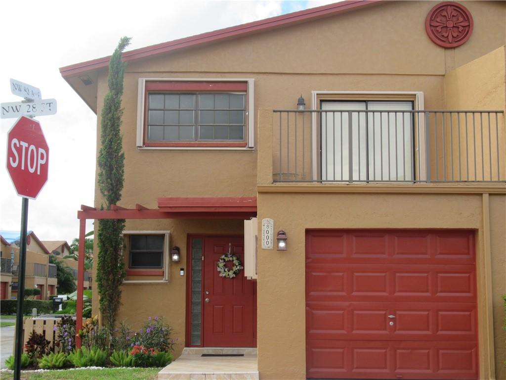 BEAUTIFUL CORNER AND ONE OF THE BEST 3 BED, 2.5 BATH, 1 CAR GARAGE AND PAVED DRY WAY TOWNHOUSE WITH 2 BALCONIES AND HURRICANE SHUTTERS! REMODELED KITCHEN W/ TILE BACK SPLASH AND STAINLESS STEEL APPLIANCES, TILE FLOORS DOWNSTAIRS AND LAMINATE UPSTAIRS, SEPARATE LAUNDRY UTILITY ROOM W/ FULL SIZE WASHER & DRYER. SPACIOUS OPEN CONCEPT LIVING AREAS AND HUGE SCREEN & FENCE PATIO READY FOR ENTERTAINMENT! ALL AGES. COMMUNITY POOL, TENNIS & RACKET BALL COURTS, CLOSE TO EVERYTHING! SHOPPING, DINING AND TRANSPORTATION.