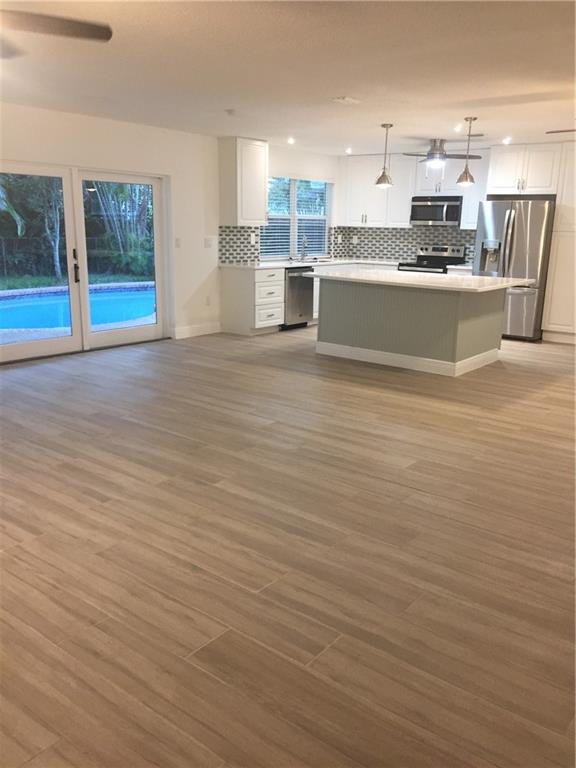 Redone and ready this home has a Lovely open floor plan , starting at the front door beautiful wide wood look tile leads you through the entire home. the kitchen is new with plenty of cabinets and drawers including a floor to ceiling pantry , all stainless steel appliances and a huge 5x7 island that seats 4+ with storage underneath . All baths have been redone . very good closet space , all windows and doors are hurricane impact as is the newer 2 car garage door. the pool has recently been refinished with a new skimmer and pool pump. fresh paint in and out , fully fenced private yard. wonderful location, near everything entertainment transportation and a short drive to the best beach in the area