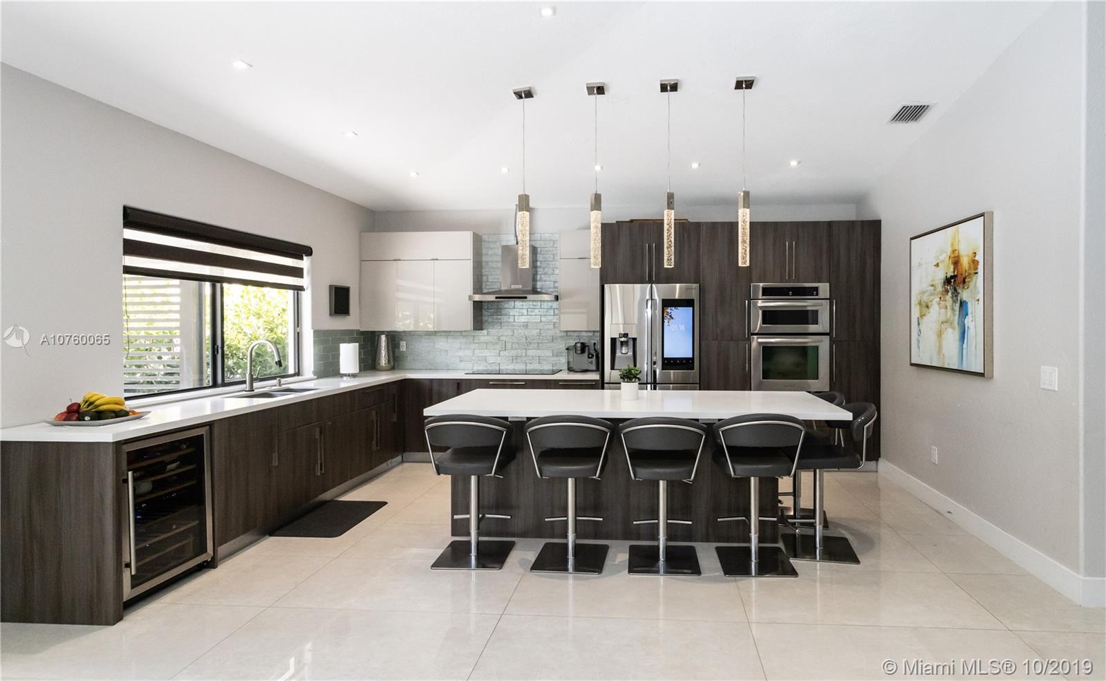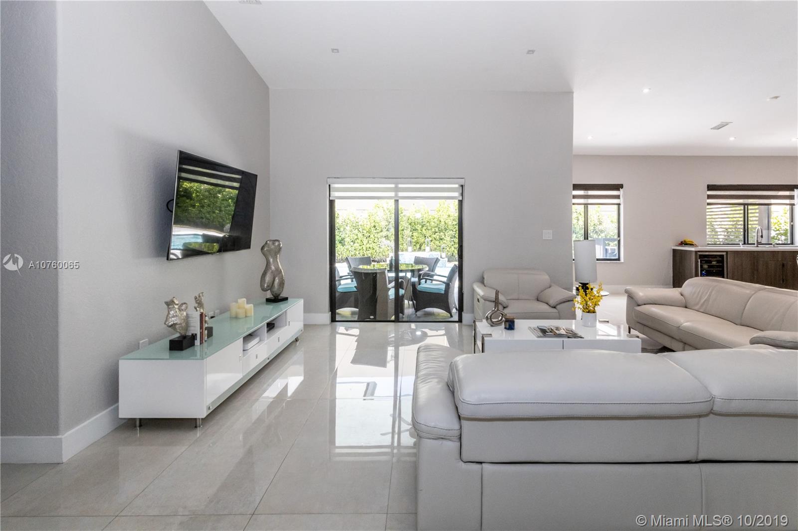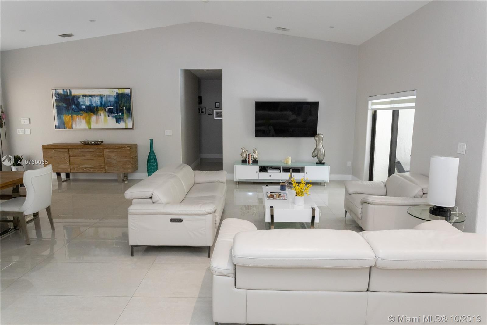 This spacious home offers souring ceilings, has been partially re-configured and completely updated with no expense spared, a MUST see. Great home for entertaining. Completely open kitchen with a custom island seating 6 people. Top of line appliances including wine cooler. All 3 bathrooms are updated. Spanish Rectified Porcelain tiles 24x48 through out the house. Reto fit recessed lighting through out living, dining and kitchen. Large open patio with pool, marble paver decking, covered patio plus a Pergola that fits quite a bit of lounge furniture. Garage converted to part storage and part recreation room with washer/dryer under a/c. Top of the line security system.