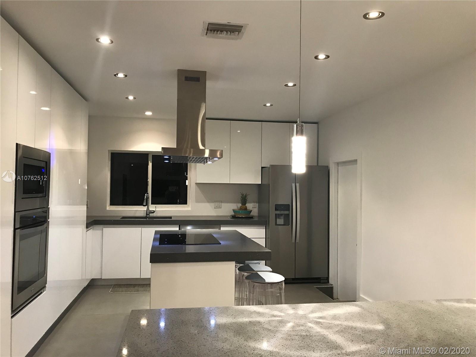 Beautifully renovated waterfront home, its spacious open interior is naturally lit.The modern house contains a living area of 2,492Sq. Ft European style kitchen with cooking Island over looking the great room and patio area.High impact windows and doors, 2 car garage with electronic doors.The pool is 15by30 feet ,surrounded by spacious sitting/lounging area for great entertainment. The property sits on a 11,250 SF land with a 75 feet deep canal water frontage with floating dock.The house was completely renovated in 2018-2019.The property is approved and licensed for short term use.