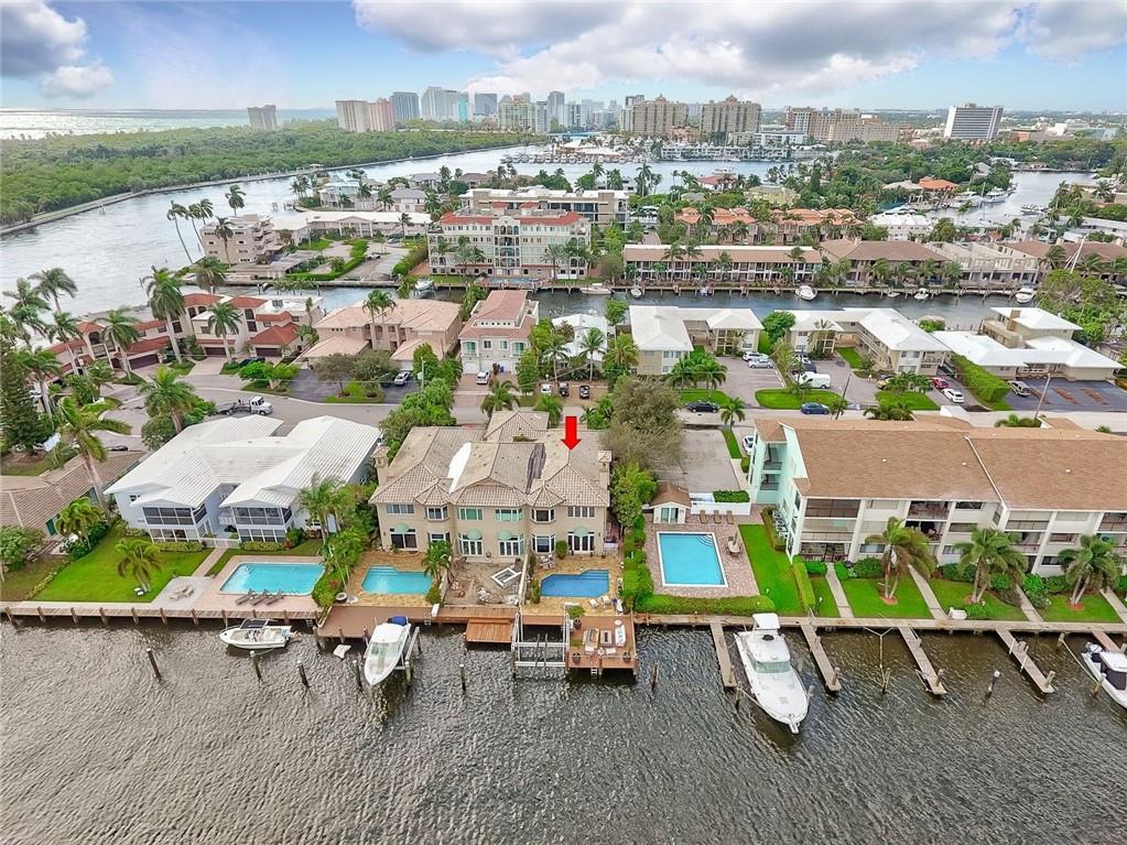No Fixed bridges w/boat lift! Two-story spacious townhome with the absolute best design & finishes available! 12FT ceilings immediately bring your eye to the beautiful wooden beams above the kitchen featuring top of the line appliances. Bedrooms are perfectly situated upstairs with large master bedroom overlooking the waterway & 2 guest bedrooms with their own private ensuite bath & private balcony. The master bedroom features 2 walk-in closets & one very large bathroom. You must see the shower! Beautiful extended dock looking straight out to the intracoastal & a brand new summer kitchen make outdoor entertainment as luxurious as it gets. Only a couple buildings from the point of the canal so very private & so close to the city. Walking distance to beach & Galleria. 5 minutes to Las Olas.