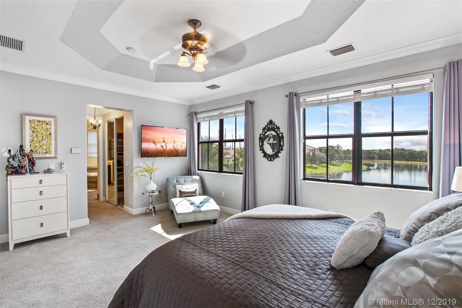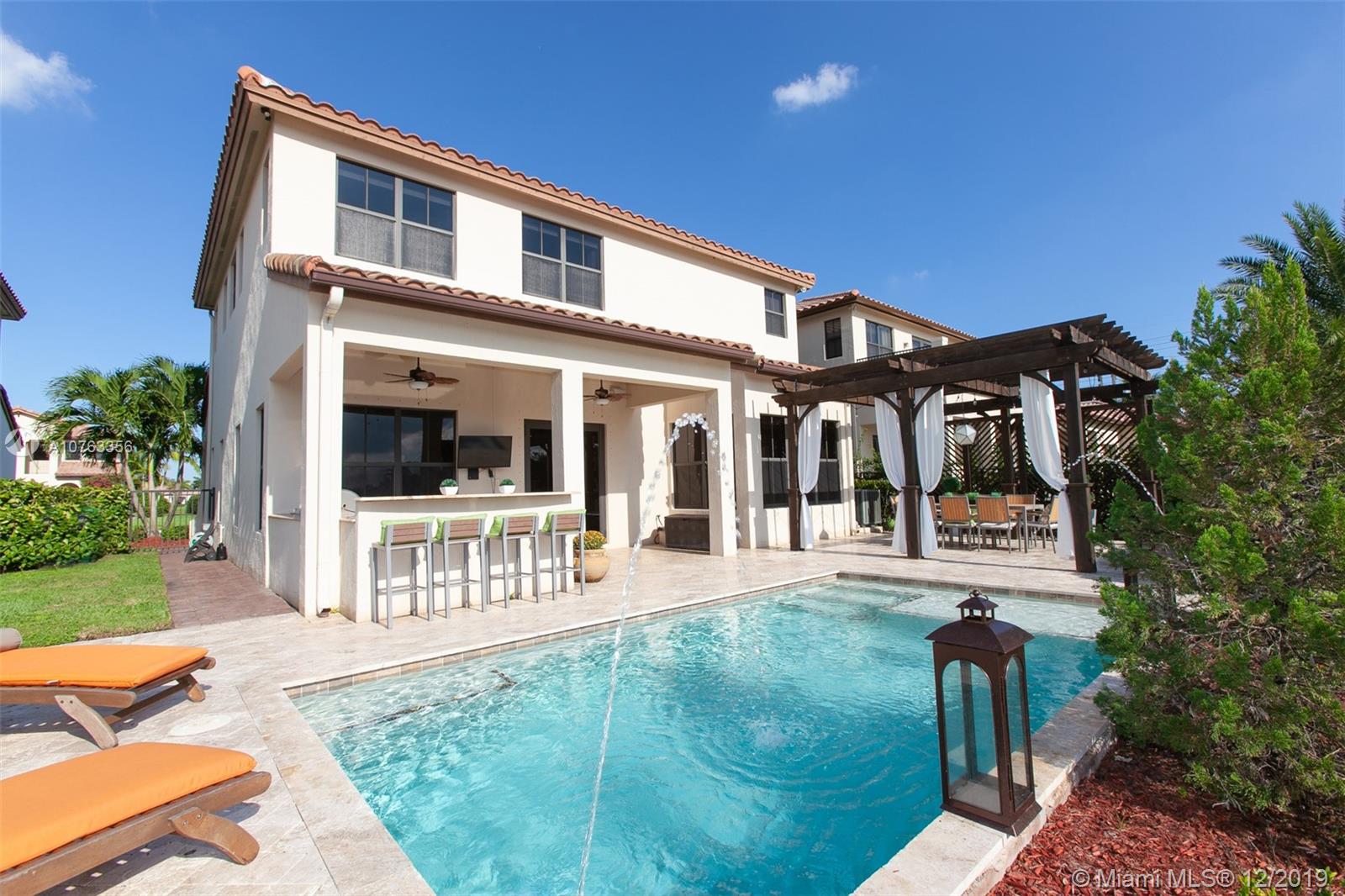 This elegant lakefront Cooper City smart home has too many upgrades to mention here. Upstairs, an 18' by 13.5' loft relishes alongside the Owner's suite which overlooks the custom built heated saltwater pool/summer kitchen. One bedroom is downstairs. The Jack and Jill bedrooms encompass the loft as well. Our 24 hour guard gated community boasts an extravagant clubhouse with all the amenities including seperate cardio and weight studios. Upon your tour, you shall find a game room, bike trail, basketball and tennis courts three play grounds and two dog parks. HOA fees are essentially included in the property taxes. Zoned for Embassy Creek Elementary.