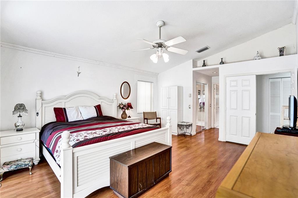 This beautiful one-story 4 bedroom, 2.5 bath home is located in secluded North Lake community. As you enter you'll find volume ceilings & a spacious split bedroom floor-plan. The Roof was replaced 2018 & A/C 2014. The kitchen has tons of counter-top space, cooking island & breakfast nook which opens to a spacious family room with plantation shutters. Large master bedroom en-suite with his/her walk-in closets & dual sink vanity plus a relaxing roman tub. Three spacious bedrooms at the rear of the home. All bedrooms have laminate flooring. Multiple sliding doors open to a huge covered patio and fenced yard for family fun and recreation. Interior laundry room. Enjoy use of a community pool & playground within this 24-hour guard gated community. Located near Eagle Point School, park and I-75.