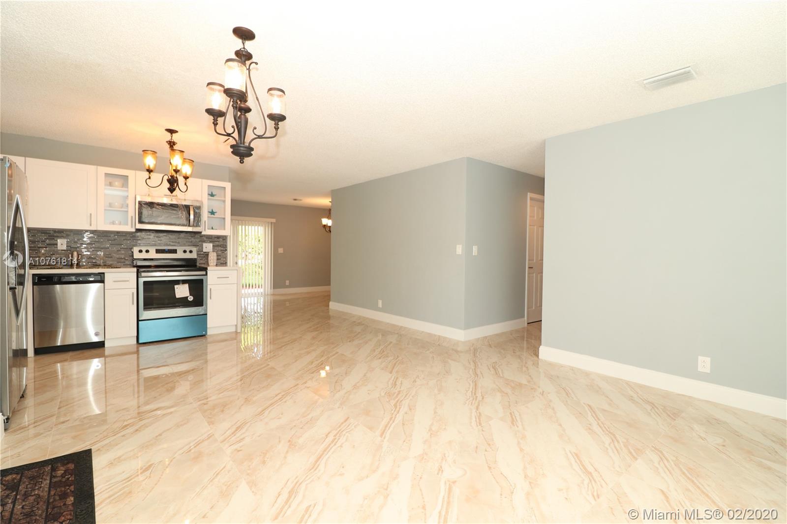 This unique GEM is in a league of it’s own in this area. Luminous elegant one story single family home, 4 Spacious Bedrooms, 2 Full Bathrooms completely remodeled New hard wood vanities. New Roof, New Garage door done with permit, New interior doors with frames, New entrance door. New tile Flooring in living room and dining room and New Wood laminate Flooring in bedrooms. New Kitchen with quartz counter top on soft closing hard wood cabinets and New SS Appliances, New Landscaping, New Sprinkler system with piping and new timer and heads. New Electrical and Plumbing fixtures. New blinds. New Smoke detector. Freshly painted interior and exterior building. Centrally located with convenient access to major roads, highways, I95. No HOA, No restriction. Must See.