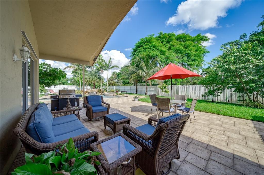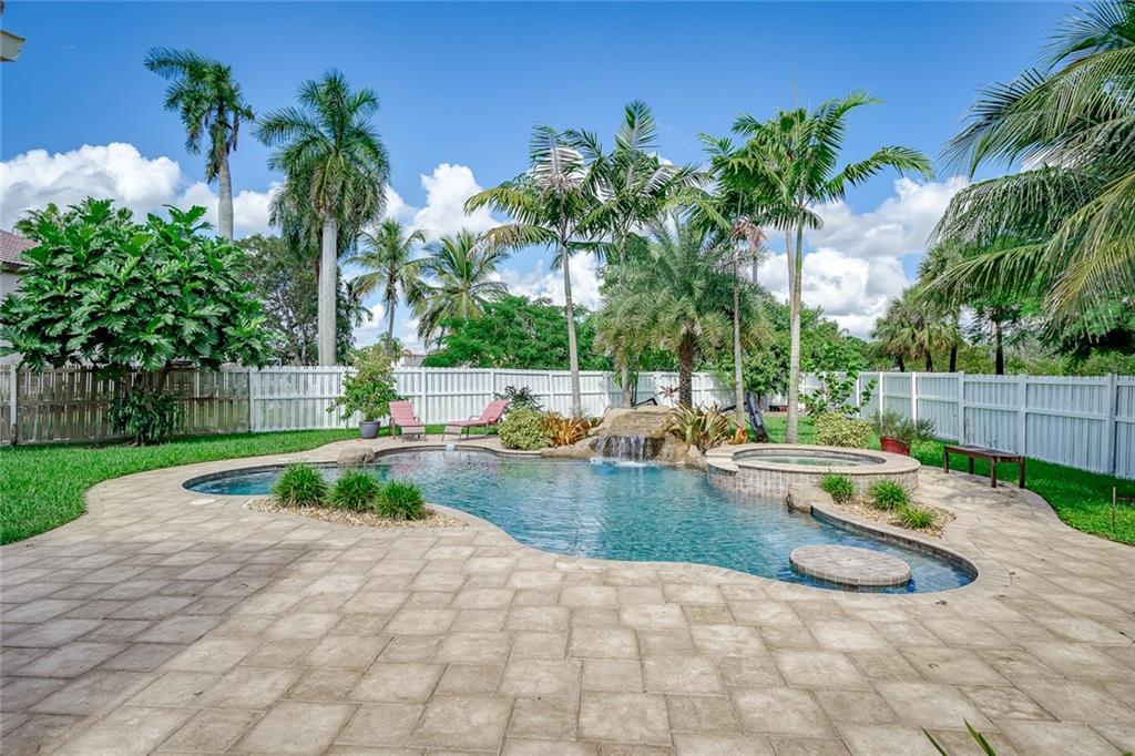 THIS ONE CHECKS ALL THE BOXES! 4 BEDROOM 2.5 BATH, SINGLE STORY, EXTENDED CIRCULAR DRIVEWAY, PARKS 6+CARS EASY, NEWER A/C, 12,000SQFT+ HUGE PIE SHAPED YARD WITH NEW SALT WATER POOL/SPA THAT FEATURES LED LIGHTING, WATERFALL, HEATED AND ALL WORKS FROM REMOTE. OPEN FLOOR PLAN, ENGINEERED HARDWOOD IN ALL BEDROOMS. GRANITE KITCHEN COUNTERS WITH SS APPLIANCES. OTHER FEATURES INCLUDE, UPDATED CABANNA BATHROOM, FULL HURRICANE PROTECTION, FRUIT TREES AND IS FULLY FENCED.