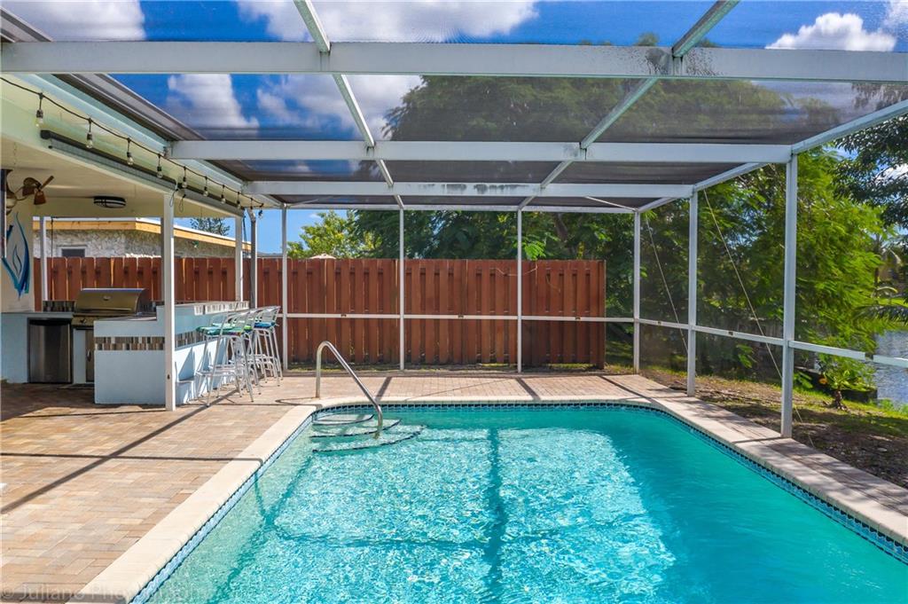 THIS HOME IS AN ABSOLUTE GEM! It all starts with an amazing outdoor entertaining area. Get ready to fire up the grill on your built in outdoor kitchen. Your friends & family will have plenty of sitting area either by the outdoor kitchen or on the large covered paver patio where you can easily sit 8 people. A little hot? Then dive into your screened in salt chlorinated pool. Enjoy your privacy as you back up to a wide canal. The inside doesn't disappoint either. This home features impact windows & doors, bamboo floors throughout the living area, updated kitchen with white cabinets, tile backsplash & eat in area. The A/C was replaced in 2018, & gas water heater in 2019. No popcorn ceilings, double wide driveway provides extra parking, fenced yard & Ring doorbell. Don't miss out on this one!