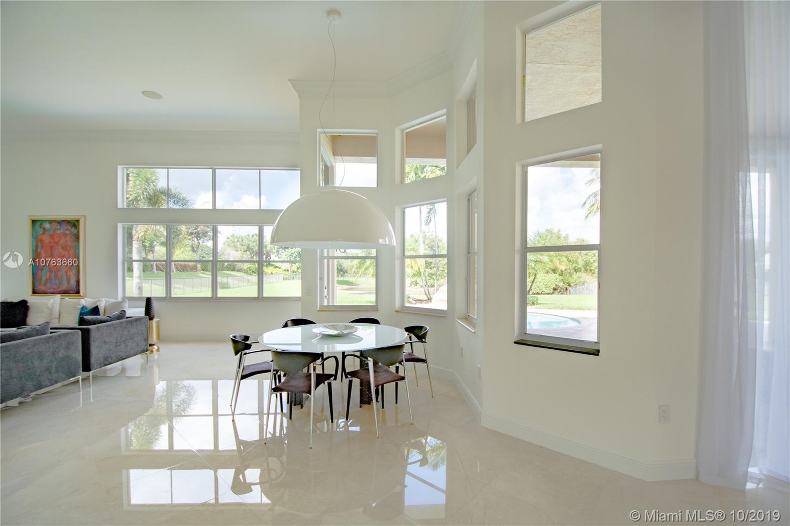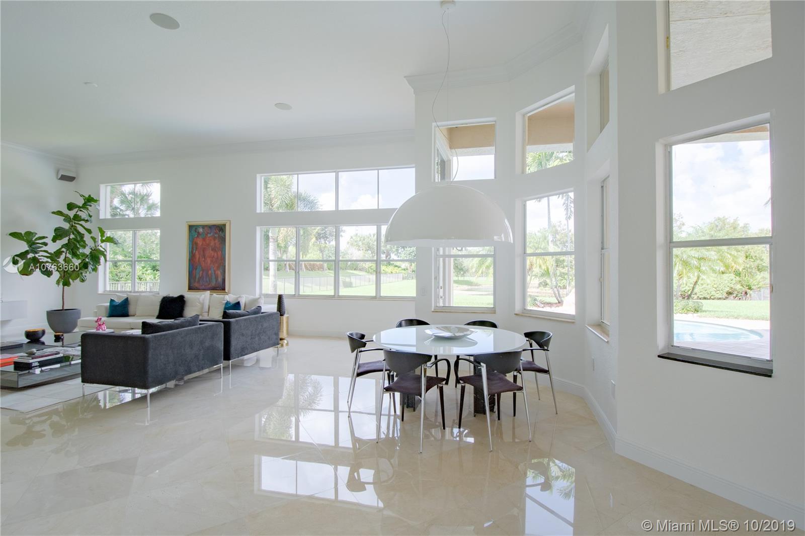 Exquisite describe this home!Corner lot, Oversize driveway, 4 bedrooms 4 baths plus Office/Bedroom. Over $200k tastefully upgraded home. Modern Custom Kitchen with 10 feet flat Italkraft Italian cabinetry, Grand Kitchen island great to entertain your guest. Sub-Zero Refrigerator/Freezer, Miele-brand Dishwasher, latest model of Wolf 36" glass Stove and double Oven. Master bedroom has 2 walk-in closets, Luxurious master bath with Spa-tub (special chiropractic therapeutic back spa) and Open walk-in Shower. 18 feet ceilings, Crown moldings, Crema Marfil Marble floors in all living areas and wood-ceramic tile on all bedrooms/office. Resort style pool, and manicure landscape. oversize lot overlooking the lake & nature preserve. Centrally located with access to I-75, I-595, Sawgrass & turnpike.