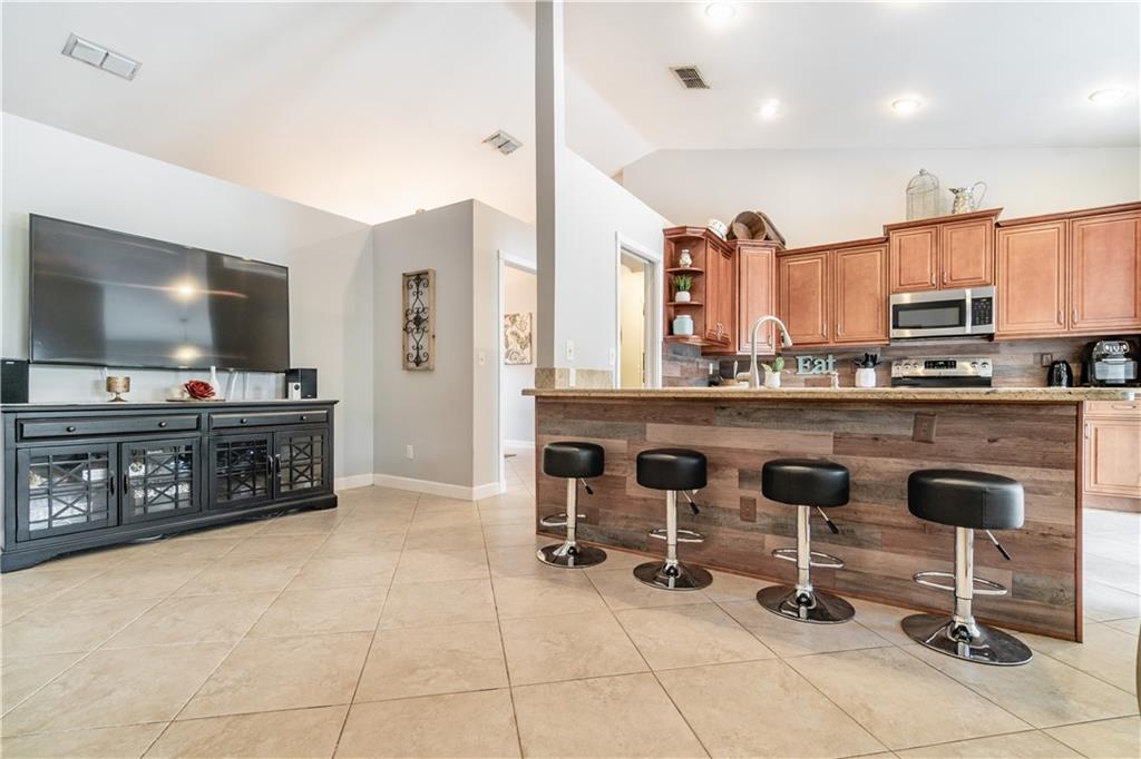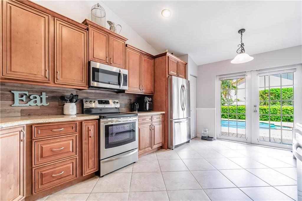 Welcome home to Forest Ridge - the most sought after community in Davie! This split floorplan, 4 bedroom / 2 bathroom home has a sparkling oasis pool and is nestled away on a large corner lot. Living areas have huge vaulted ceilings and tile floors throughout. Kitchen has been updated with newer cabinetry and granite countertops, as well as all stainless steel appliances. Master has a separate tub and shower, with huge his and hers walk in closets. This home has been well maintained and is move-in ready!