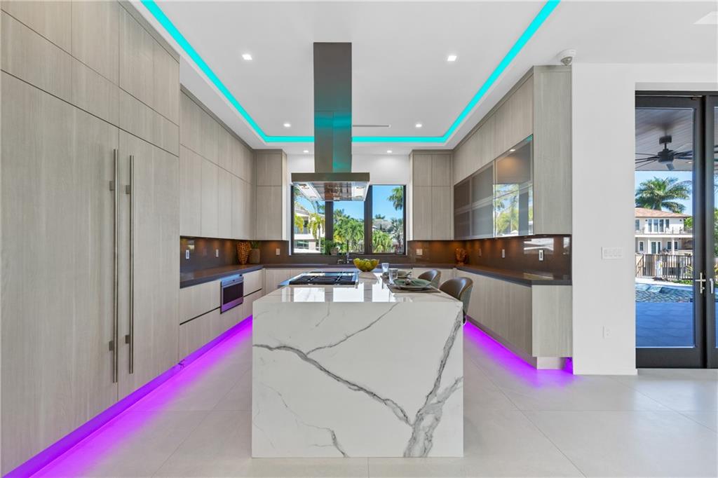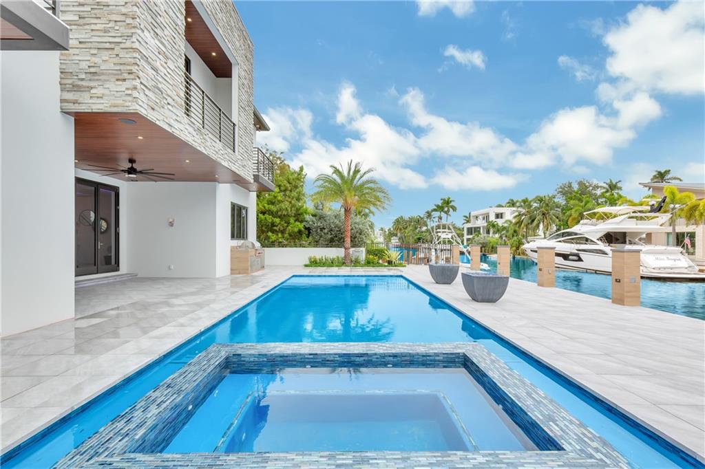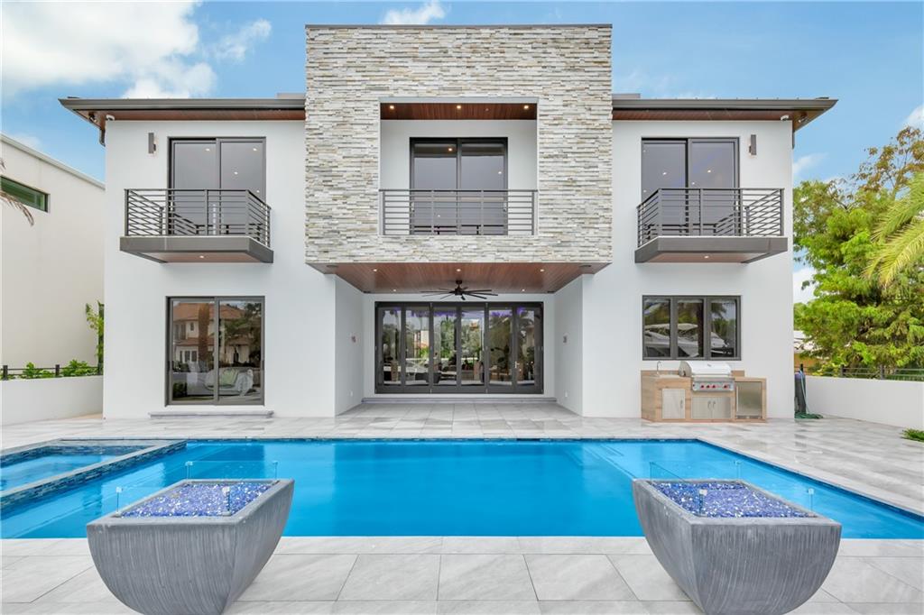 Completion date October 2020! This new construction masterpiece offers the perfect opportunity to live your luxury lifestyle in Las Olas Isles! A grand entryway with a 32 ft' ceiling, entrance waterfall lead the way to the open floor plan with a chef’s kitchen, dining and living area with a linear gas fireplace, game room with bar, 2 half baths, laundry room and owner’s suite. 2nd floor features 4 add'l ensuite bedrooms with balconies and a second laundry room. The backyard features a spa that cascades into the pool, fire bowls, outdoor kitchen and concrete dock. This smart home has high-end finishes and a full-house generator. THE NEW COCONUT ISLE BRIDGE & ROAD PROJECT TO BE COMPLETED BY DECEMBER. Lot next door can be purchased for combined water-frontage of 130 ft'.