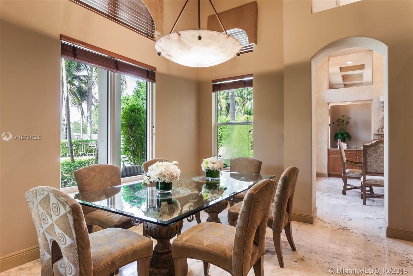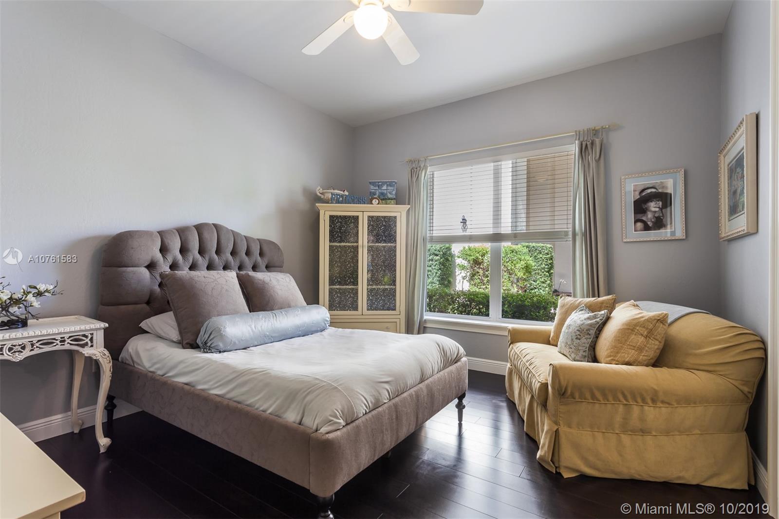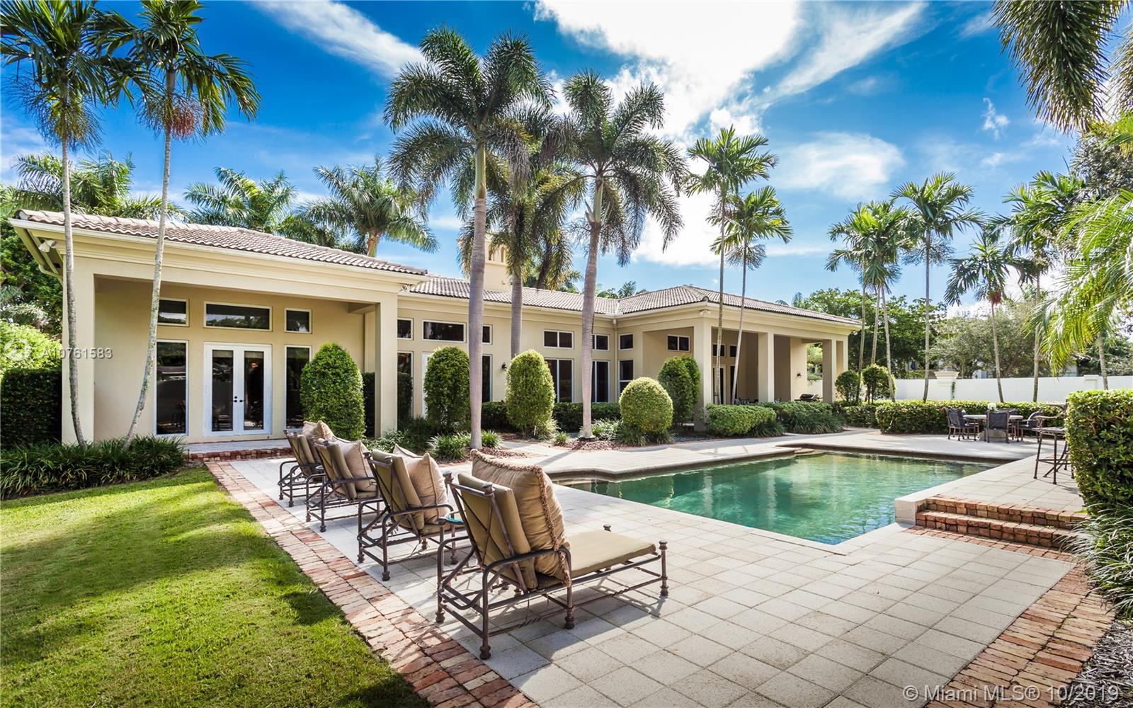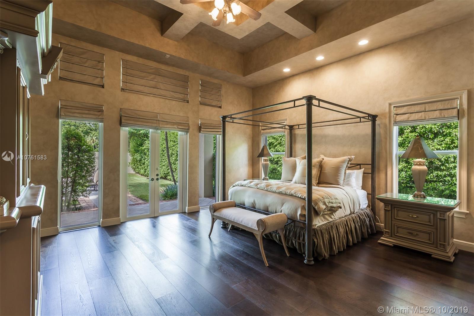 Situated in Parrot Jungle Historic District and less than a quarter-mile from Pinecrest Gardens, is a novel gem in the gated enclave of The Sanctuary. The open space and high volume ceilings are complimented by marble and European hardwood floors throughout. A double-sided fireplace embraces the ambiance between the extraordinary living and dining rooms, complemented by an epicurean kitchen perfect for entertaining or making family memories. Spacious master suite with private seating nook, two expansive closets, and master bathroom create a retreat in this split floorplan. Lots of storage with custom built-ins in every closet, and family room providing a clean look with hidden desks. High-impact French doors and windows gaze into a verdant landscape and pool waiting to receive you.