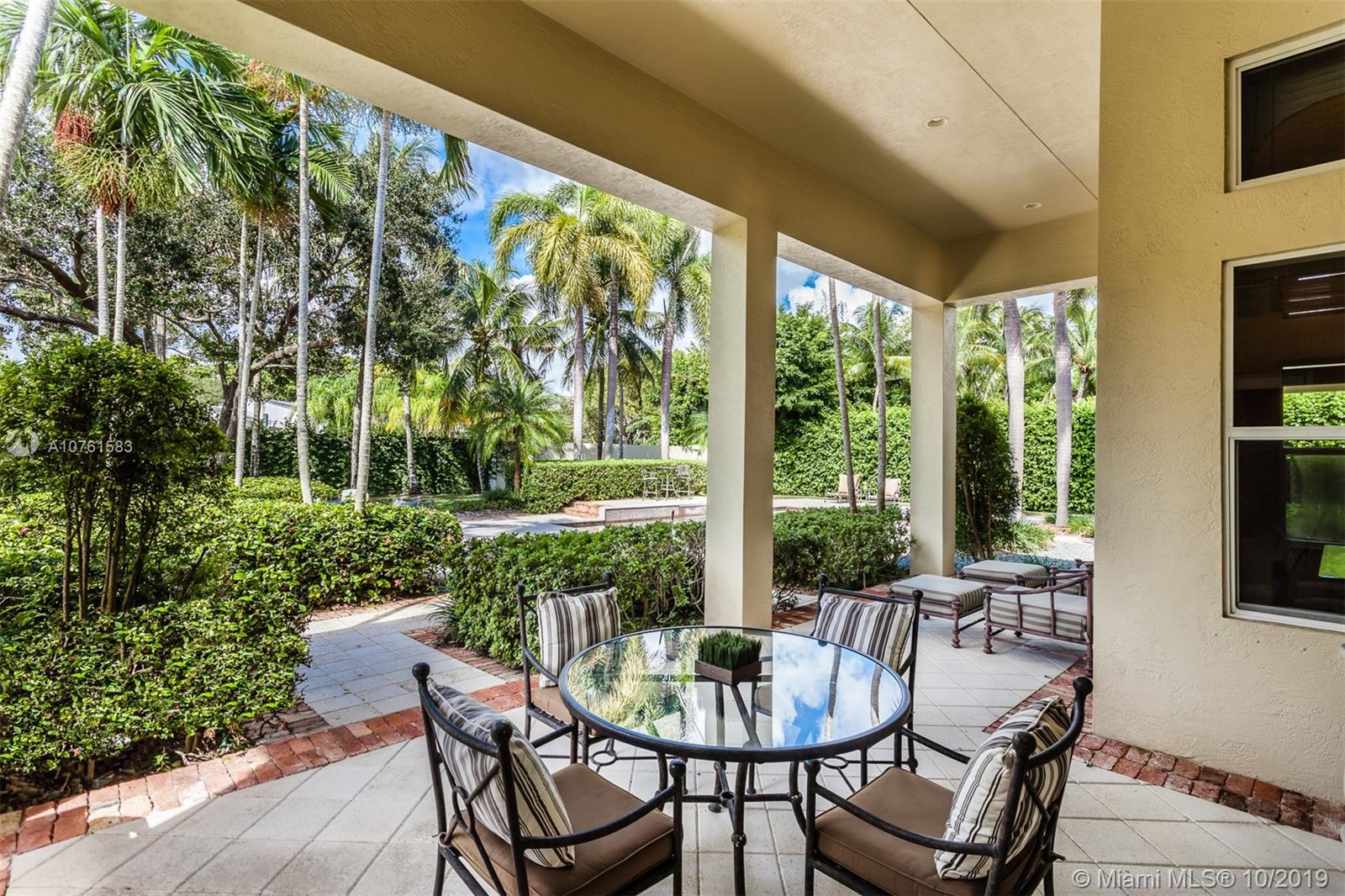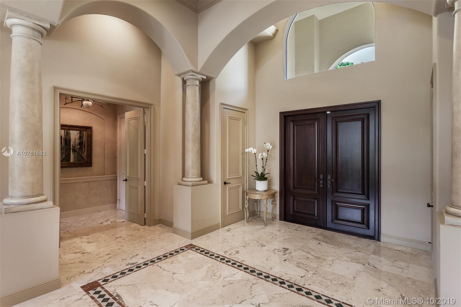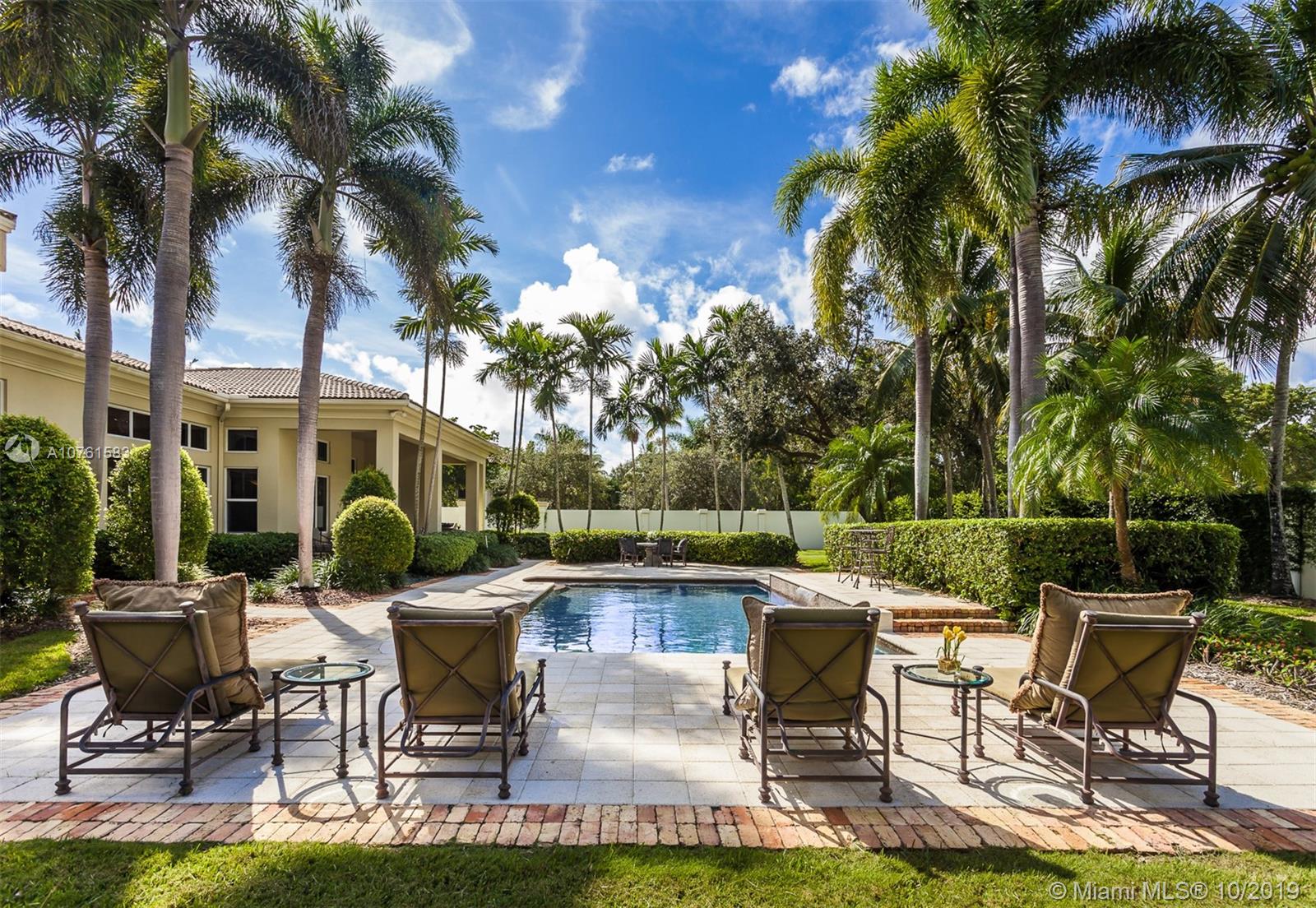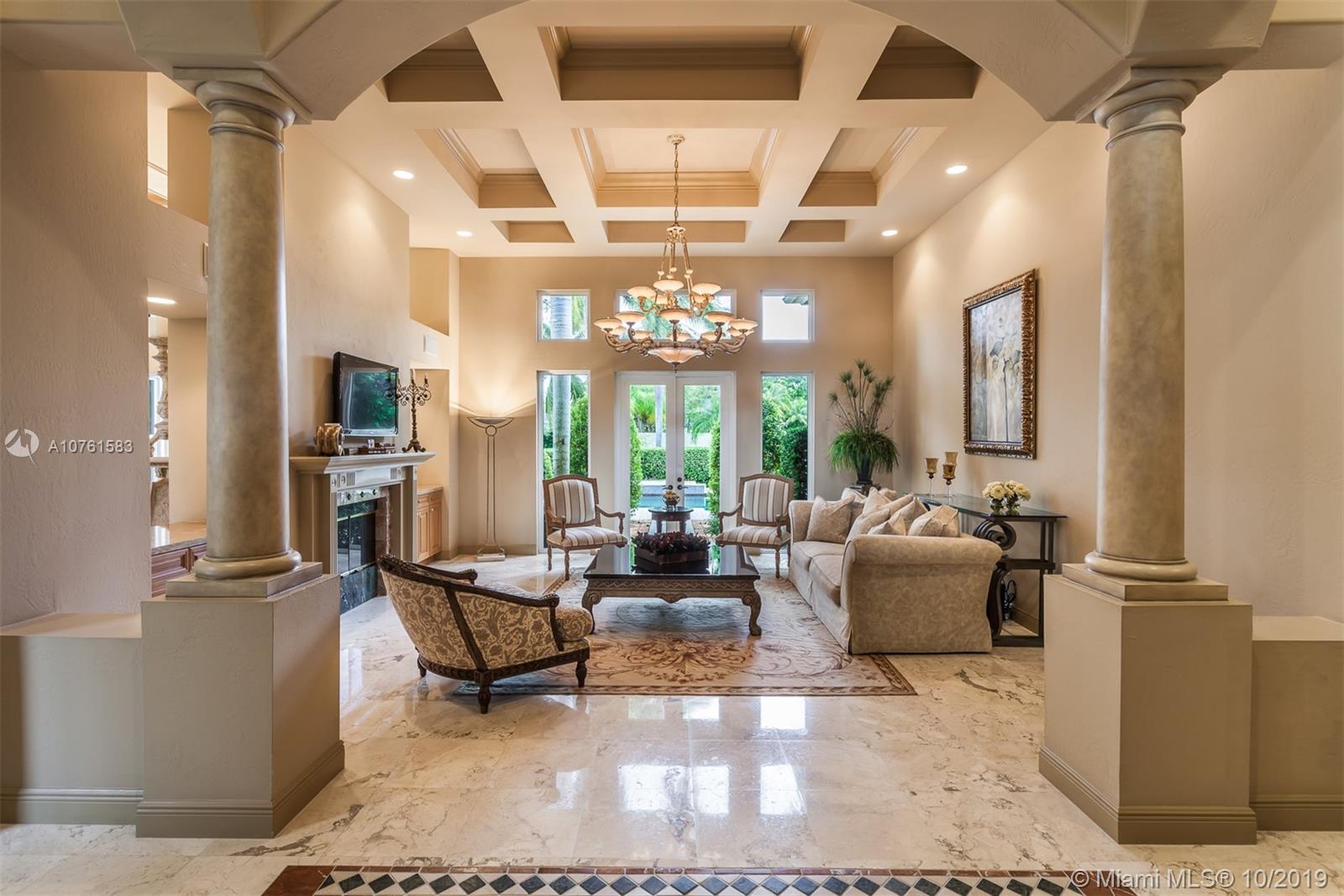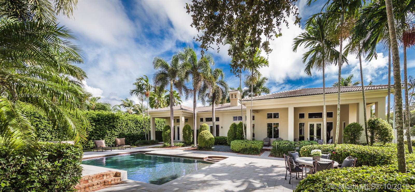 Situated in Parrot Jungle Historic District and less than a quarter-mile from Pinecrest Gardens, is a novel gem in the gated enclave of The Sanctuary. The open space and high volume ceilings are complimented by marble and European hardwood floors throughout. A double-sided fireplace embraces the ambiance between the extraordinary living and dining rooms, complemented by an epicurean kitchen perfect for entertaining or making family memories. Spacious master suite with private seating nook, two expansive closets, and master bathroom create a retreat in this split floorplan. Lots of storage with custom built-ins in every closet, and family room providing a clean look with hidden desks. High-impact French doors and windows gaze into a verdant landscape and pool waiting to receive you.