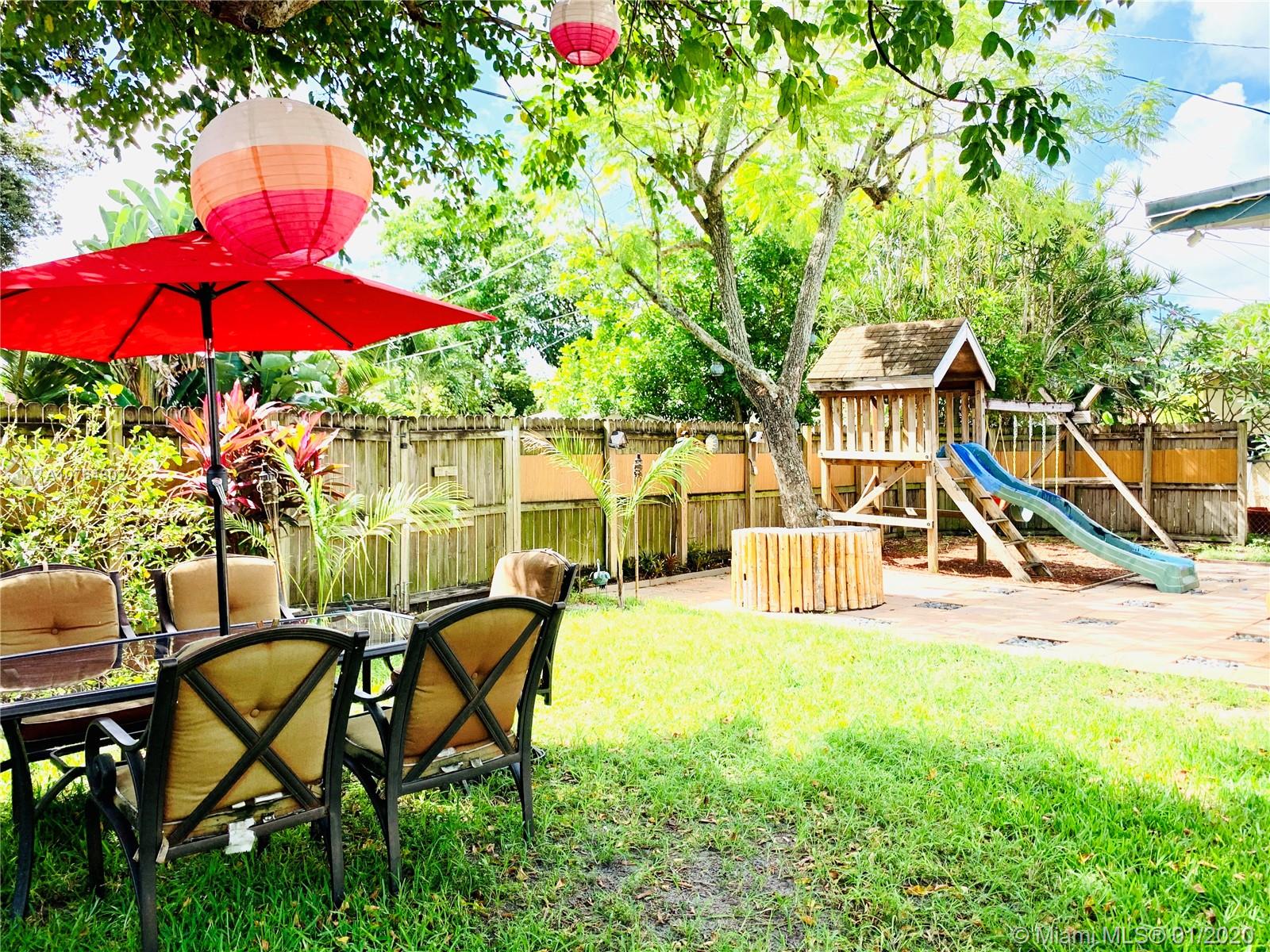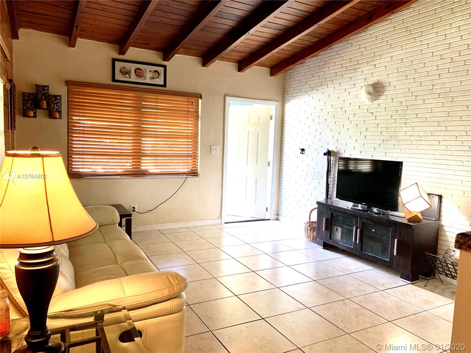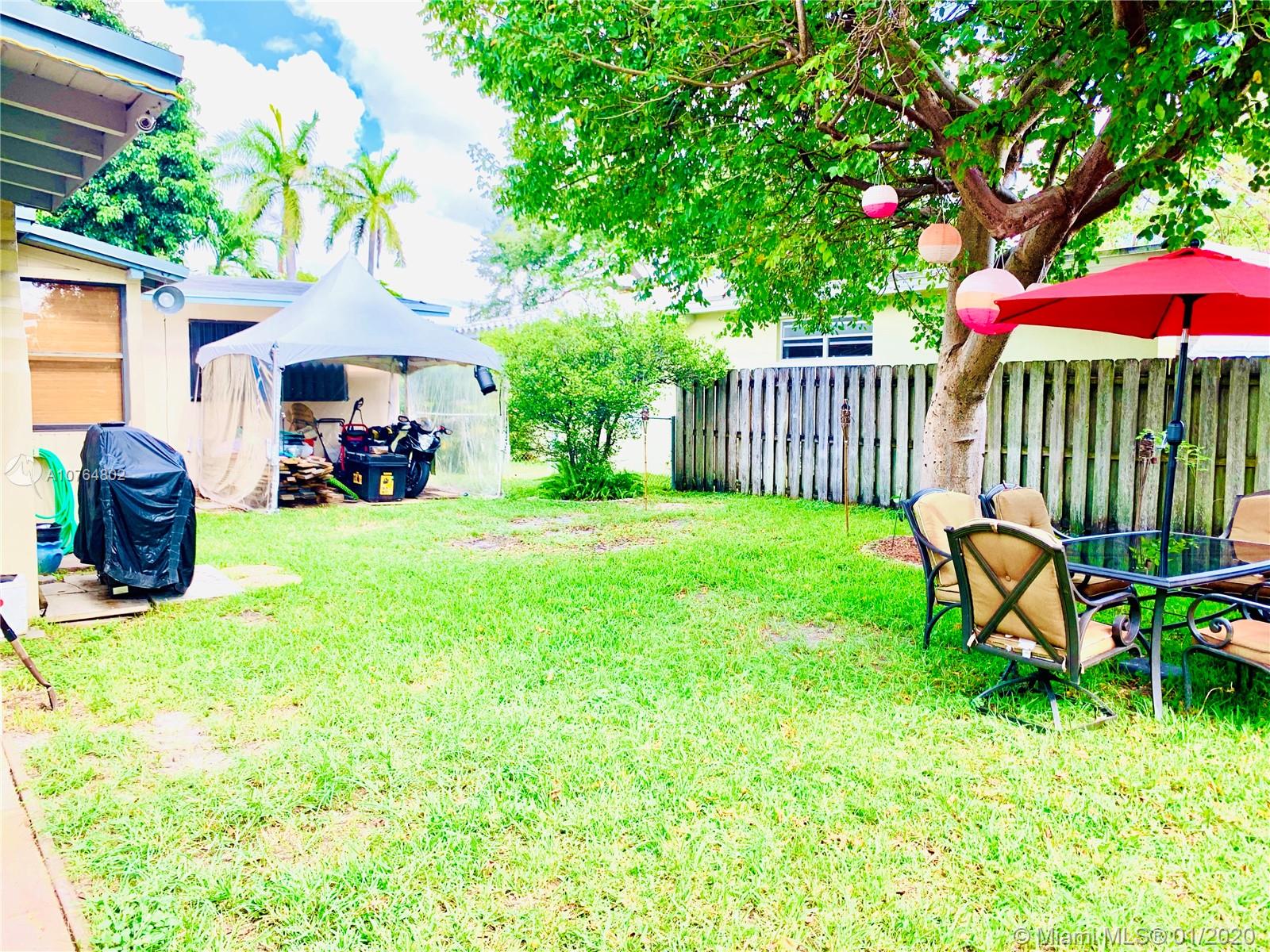 Bright & inviting spacious home, in a quiet neighborhood, centrally located in sought after Hollywood, w/in minutes of shopping, dining, major roads & schools. Featuring 3 Bdrms with Master en-suite & Guest Bathroom, Living/Dining area, Updated Kitchen w/ Granite countertops, and an oversized Den w/ fireplace that can be utilized as an additional bdrm, office or family room. Elegant vaulted wood-beamed ceiling and a natural wood paneling accent in the living area. Ceramic Tile/Carpet. Separate Laundry/Utility room with storage & full w/d. Beautiful and large fenced backyard with a gorgeous paved patio and playground. Additional Features: Furniture for Sale/Negotiable, Security Camera System; Newer Roof & AC; Concrete for shed, & Hurricane Accordion Shutters. Perfect Canvas for any Buyer!!