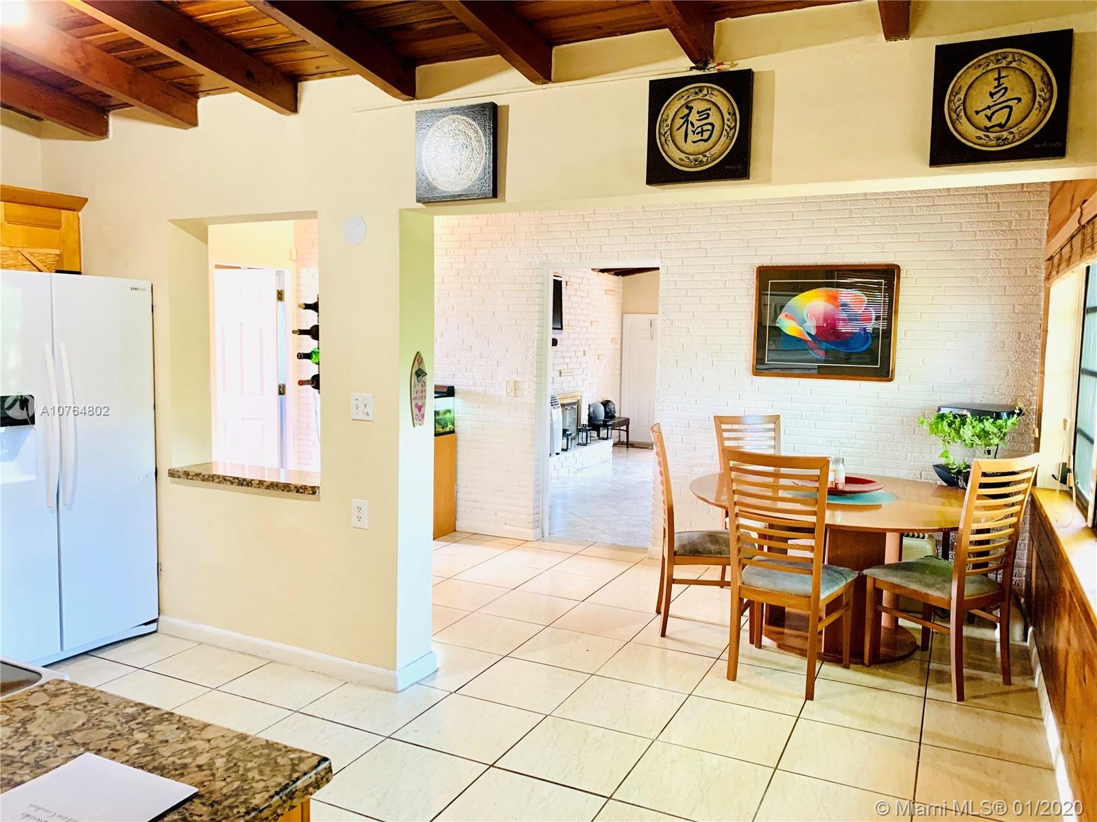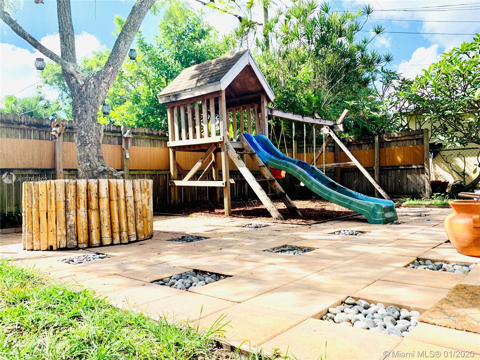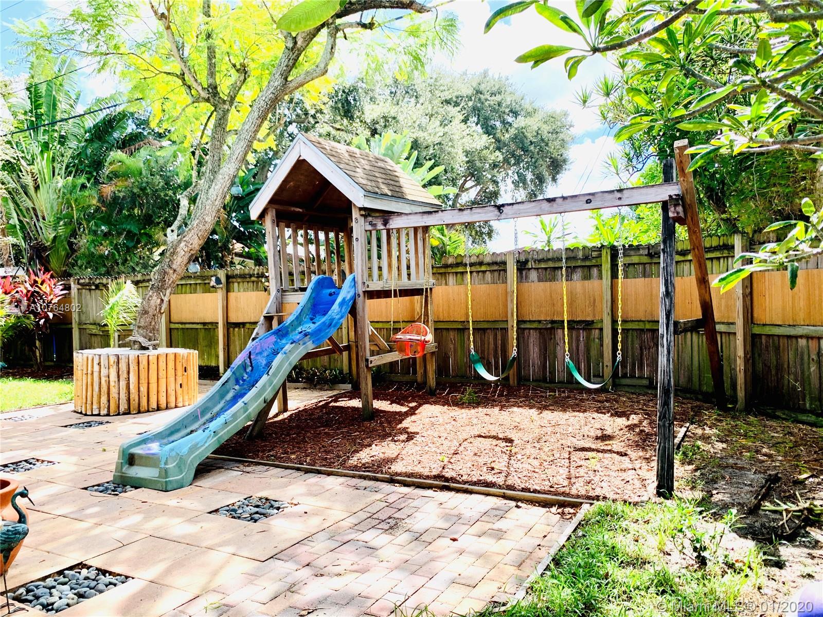 Bright & inviting spacious home, in a quiet neighborhood, centrally located in sought after Hollywood, w/in minutes of shopping, dining, major roads & schools. Featuring 3 Bdrms with Master en-suite & Guest Bathroom, Living/Dining area, Updated Kitchen w/ Granite countertops, and an oversized Den w/ fireplace that can be utilized as an additional bdrm, office or family room. Elegant vaulted wood-beamed ceiling and a natural wood paneling accent in the living area. Ceramic Tile/Carpet. Separate Laundry/Utility room with storage & full w/d. Beautiful and large fenced backyard with a gorgeous paved patio and playground. Additional Features: Furniture for Sale/Negotiable, Security Camera System; Newer Roof & AC; Concrete for shed, & Hurricane Accordion Shutters. Perfect Canvas for any Buyer!!
