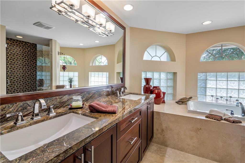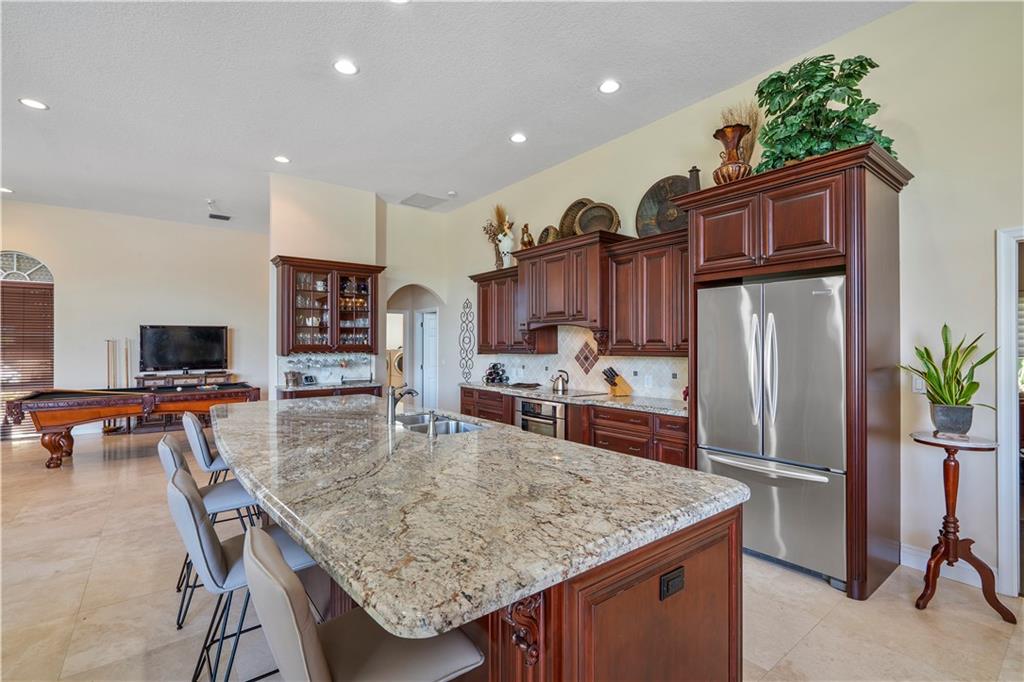 Updated waterfront beauty on private cul-de-sac lot. Spacious open floor plan with volume ceilings and water views from almost every room. Custom chefs kitchen, wine fridge, Bosch dishwasher and microwave built-in the 11' Island. Oversized laundry room with pantry and tons of storage. Triple split floorplan, fruit trees, fully fenced backyard, paver patio with plenty of room for entertaining. Wired security cameras and motion detected exterior lights. Accordian Shutters with electric shutters over front door and windows makes this house hurricane ready in a jiffy! Dual zone AC both replaced 7/15. New Hot Water Heater 8/19. Recent Wind Mit & Roof Inspection available. This is the ultimate family and entertaining house with magnificent water views!