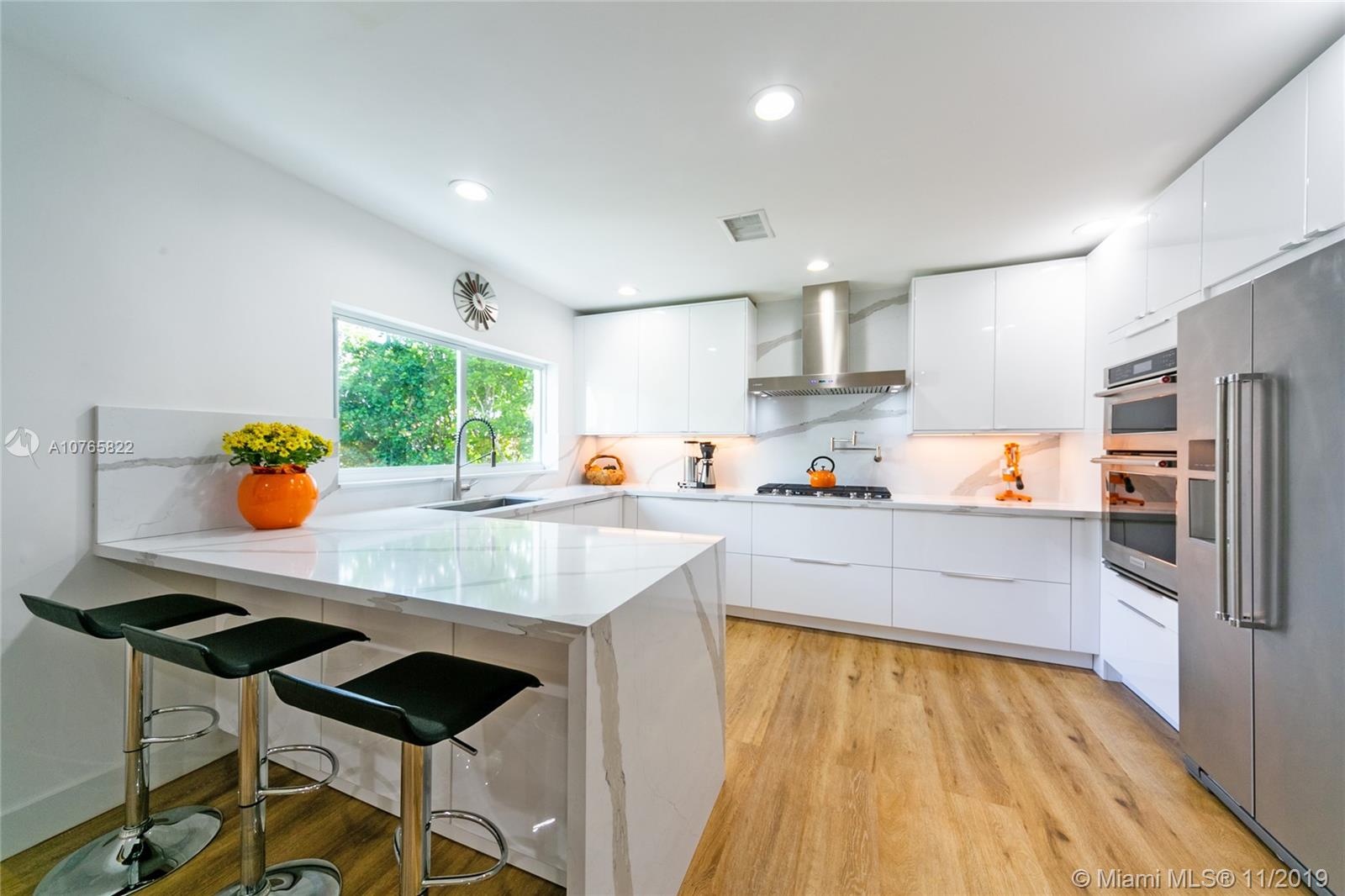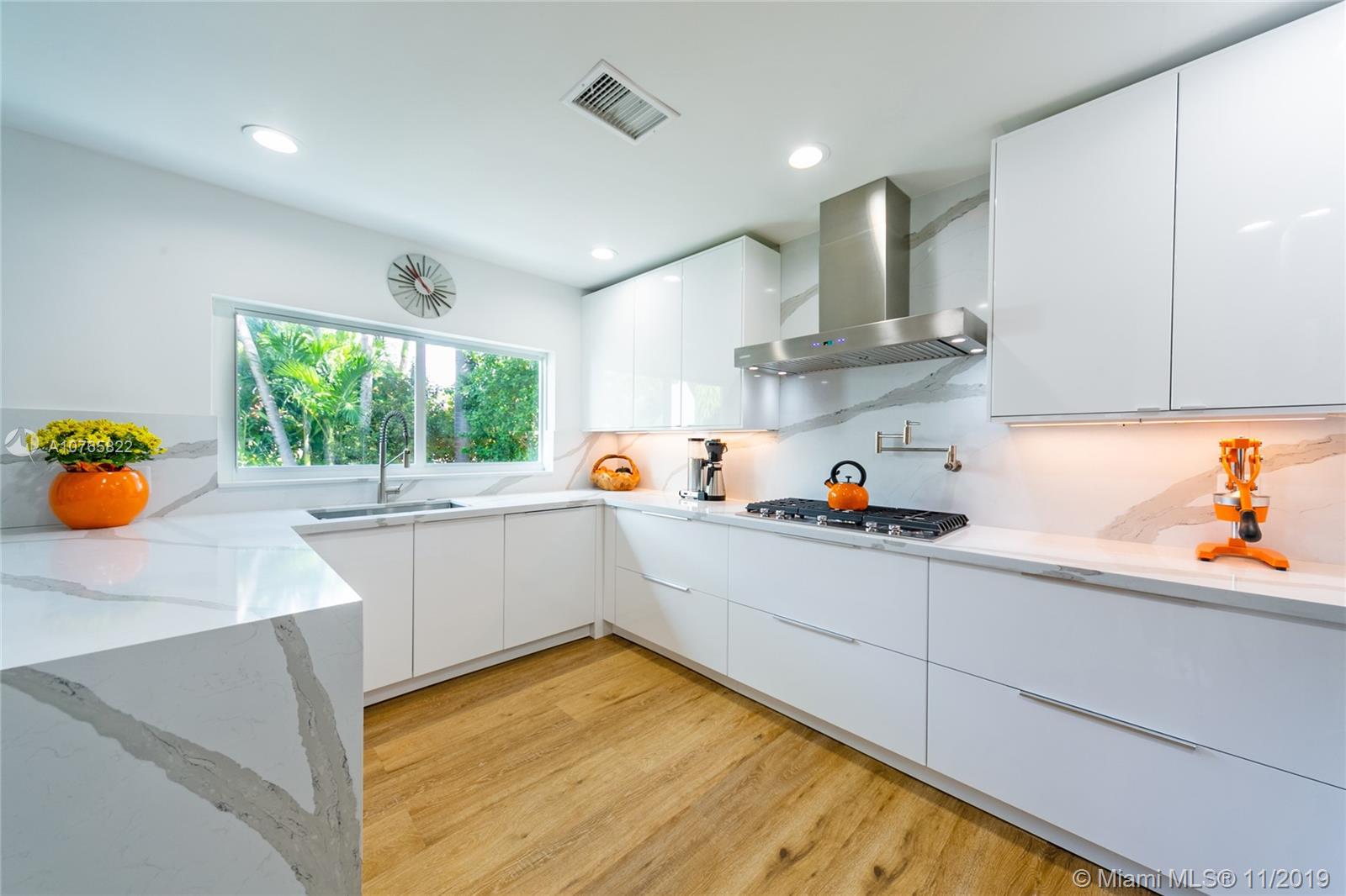 Tastefully renovated Hollywood Lakes waterfront pool home located on quiet, low-traffic cul-de-sac street. 3 bedrooms plus den/office that can be used as 4th bedroom. New custom eat-in kitchen with white cabinetry, Kitchen-Aid appliances, 5 burner gas cook-top w/pot-filler faucet and stunning white quartz counter tops. New baths, new roof (2019), new hvac, termite warranty, updated electric, plumbing and new flooring throughout make this turn-key home a rare find. The bright, open floor plan is great for easy living and entertaining. Wonderful waterfront outdoor area featuring pool with natural Pebble-Tech finish and river rock waterfall. Spacious patio areas overlooking tranquil waterway & beautiful sunsets. Professionally landscaped with many local specimen plantings. Easy to show.