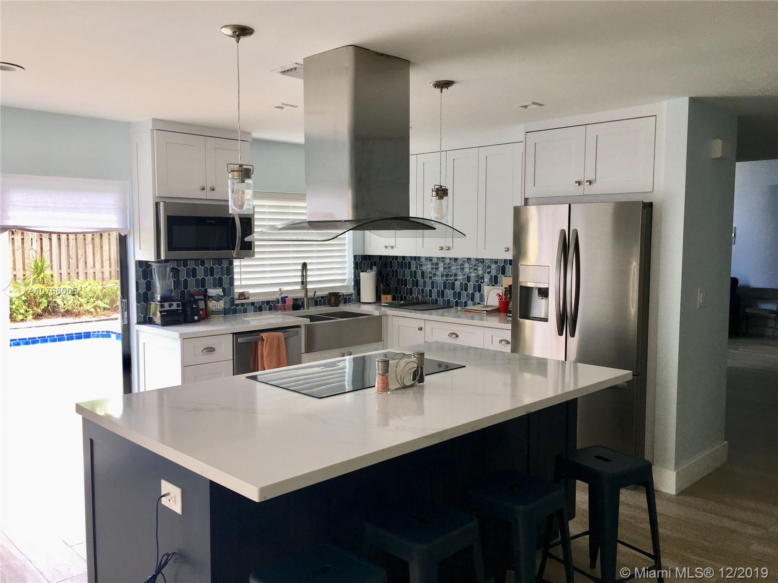 The Beach House in the Woods! Located in the desirable Woods of Emerald Hills, this fully Remodeled 3/2.5 boasts High Ceilings, Picturesque windows and sliding glass door overlooking the Tropical pool area (new Diamond Brite 2018), and a Kitchen that includes Stainless Steel, Farmhouse sink and a center island with an induction cooktop. Porcelain Plank Tiles throughout, Quartz countertops in Kitchen and Bathrooms, large pantry, a two car garage that can be converted into a fourth bedroom (A/C connection already in place), new washer/dryer, and a spacious walk in closet in the master. Tranquilly on a friendly cul-de-sac and walking distance to several Houses of Worship, this house sits near plenty of shopping, the Turnpike, I95 and the Beach. Ask about the potential HOA discount...