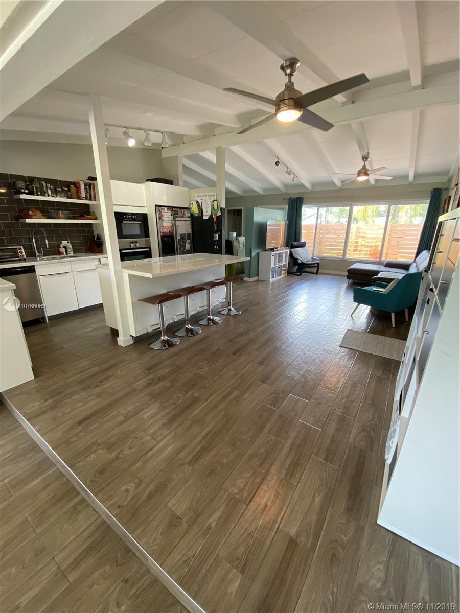 Mid-century Architectural Style in Lauderdale Isles! Remodeled home boasts new ceramic tile floors, hurricane impact windows in the front plus hurricane impact front door, sliding glass doors at the back of the house with shutters, large open floor plan, brand new custom designed closets in every bedroom, and modern kitchen built for entertaining at the heart of the home with quartz countertops! Brand new High Efficiency Split A/C System which is extremely cost effective and brand new washer and dryer in newly remodeled laundry/storage room. Enjoy a barbecue in your very large private fenced in yard and large screened in patio with irrigation system and lots of storage. Must see one of a kind house that will sell fast!