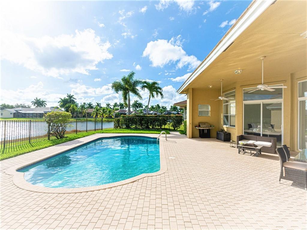 Situated on a spectacular pie-shaped lakefront lot of 0.35 acres with extensive water views ending with Weston Hills tour course in the near distance, this custom 5BD/3.5BA/3CG single story boasts a large extended covered patio with covered BBQ grill niche, pool & fully fenced yard, perfect for outdoor entertaining! Brand new roof 2019! Spacious, light, bright, triple split floor plan w/ high volume ceilings & views from almost everywhere! Huge granite kitchen with tall white cabinetry, large center island, walk-in pantry, newer stainless appliances & modern lighting over snackbar. Cabana style bathroom with guest suite off family room is perfect as in-law suite. Adjacent to master suite is a den with closet, great as office or nursery. (Pls see Broker Remarks for some post closing info.)