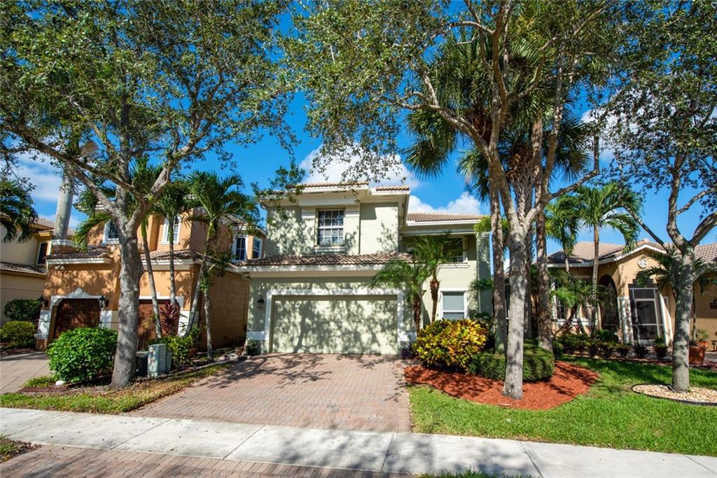 Wow, this gorgeous home shows like a model and offers a phenomenal floor plan w/ the master suite & additional bedroom downstairs (upstairs offers two bedrooms, full bathroom & loft)! Outstanding upgrades & features include: dramatic high ceilings; beautiful kitchen w/ "new" white cabinets, subway tile backsplash, stainless steel appliances ("new" dishwasher , disposal & faucet), granite counters; stone-look tile in all living areas; wood laminate flooring in master bedroom & life proof vinyl flooring in nursery; 2 "NEW" a/c units; freshly painted interior & exterior; accordion hurricane shutters; fully fenced yard; resurfaced (diamond brite) pool; "new" pool tile, pool pump & filter; and much more! Enjoy the resort-style (newly renovated) amenities of Heron Bay and A-rated schools!