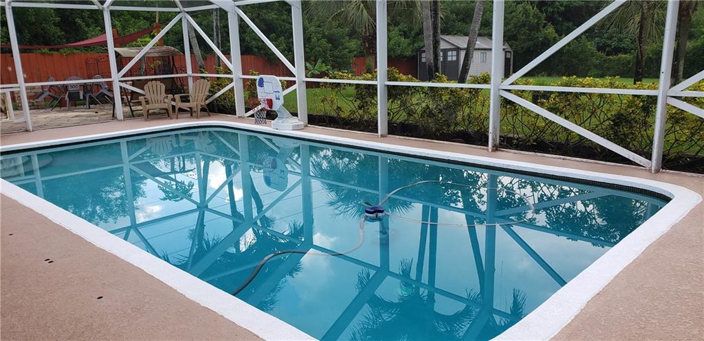 Beautiful house on 1 acre land with pool in pine tree estate community . No HOA./no association fee.large kitchen with plentiful counter& cabinets. Master bedroom overlooking the patio,screen pool.Huge backyard with playground. Separate Large sheds.master bath is like spa bath. Open patio and screen pool patio . Just come and see . Located near Great A-schools. Long driveway can park many cars.Agent - see broker remarks