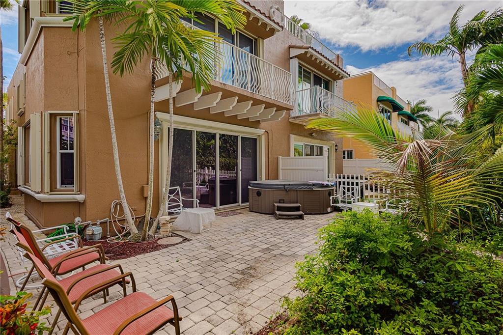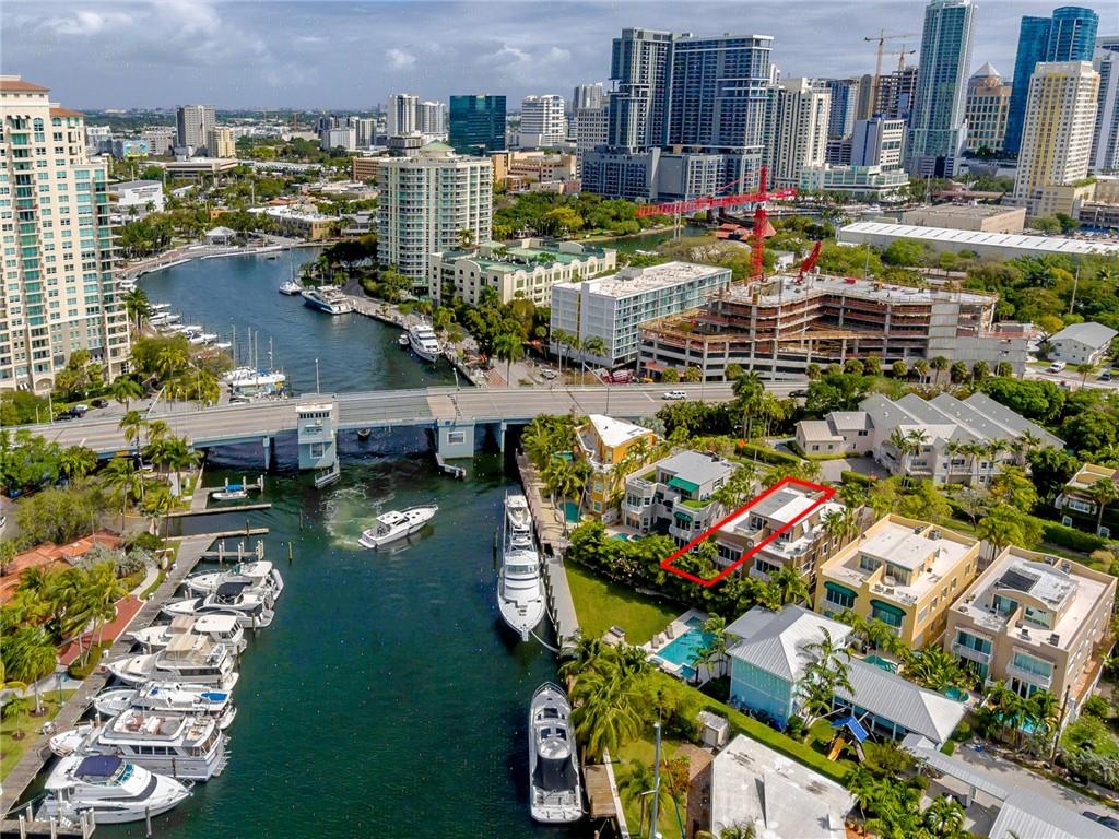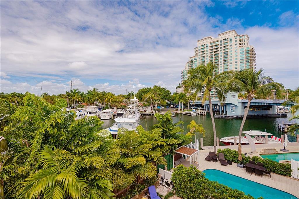 Motivated Seller. Walking distance from Las Olas. This tri Level Townhome in desirable New River location! Great floor plan with spacious 2891 sf of living area. 3 bedrooms, 3.5 baths a 2-car garage and rooftop patio offering incredible 360-degree views. Wood floors, vaulted ceiling, crown moldings, high ceilings throughout. Large open kitchen with wood cabinets stainless appliances with gas range. Dinning room and large living room with gas log fireplace and sliders opening out to patio w/hot tub. Master bedroom w/private balcony overlooking the New River. Second master also w/private balcony - city views. Third bedroom on third floor with ensuite bath and sliders to rooftop patio. All windows have hurricane shutters. Secure garage with direct access to home. NO HOA FEES!