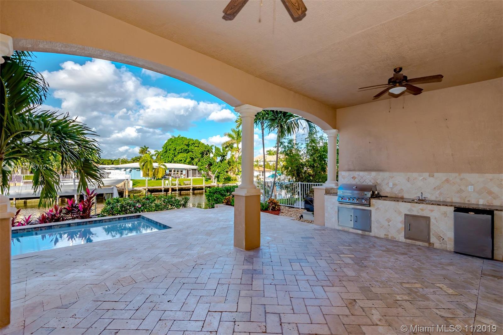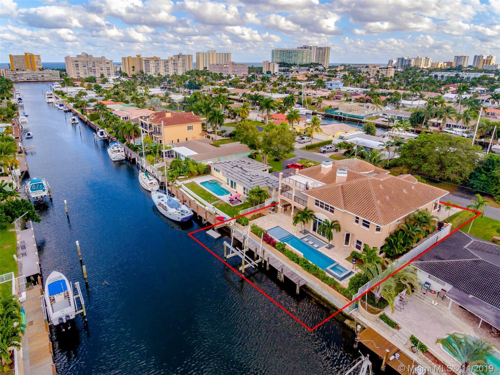 JUST REDUCED!A BOATERS DREAM! This custom designed, very spacious home was built in 2012 with over 5800 square feet living area. Featuring 5 bedrooms with ENSUITE bathrooms on a 80 ft deepwater canal with private dock, boat lift and OCEAN ACCESS. Minutes from the Hillsboro Inlet. Many LUXURY INTERIOR FEATURES include a dream kitchen with Sub-Zero and Wolf appliances, warming drawer, wine and serving bar. Relax at your extraordinary pool and spa and host your next gathering on your patio with an outdoor kitchen. Enjoy spectacular views from your ROOF TOP. The huge Master bedroom features a breakfast kitchen, his and her closets and a fireplace. From every room you have access to balconies. Elevator ready for your convenience. 10 min. to excellent private schools like the Pine Crest School.