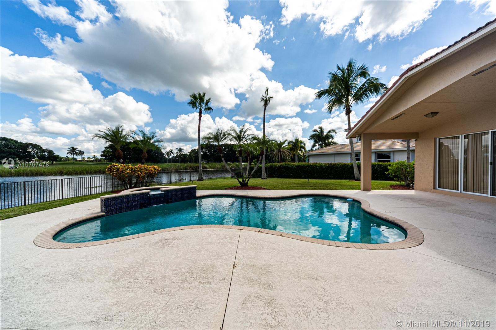 LIVE IN A SPACIOUS HOME IN EXCELLENT CONDITION, LOCATED ON A FABULOUS PRIVATE LOT ON A CUL DE SAC STREET. 5BR/3BA. WITH LAKEFRONT AND GOLF COURSE VIEW, FEATURES: SPLIT FLOOR PLAN,OFFERS A GREAT OUTDOOR SPACE, TERRACE, BACKYARD, JUST PAINTED, ATTRACTIVE LANDSCAPING, GRANITE COUNTER TOPS, OPEN KITCHEN, ELEGANT DINING/LIVING, 2 CAR GARAGE, POOL, PERFECT HOUSE FOR ENTERTAINING FOR YOU AND YOUR FAMILY.