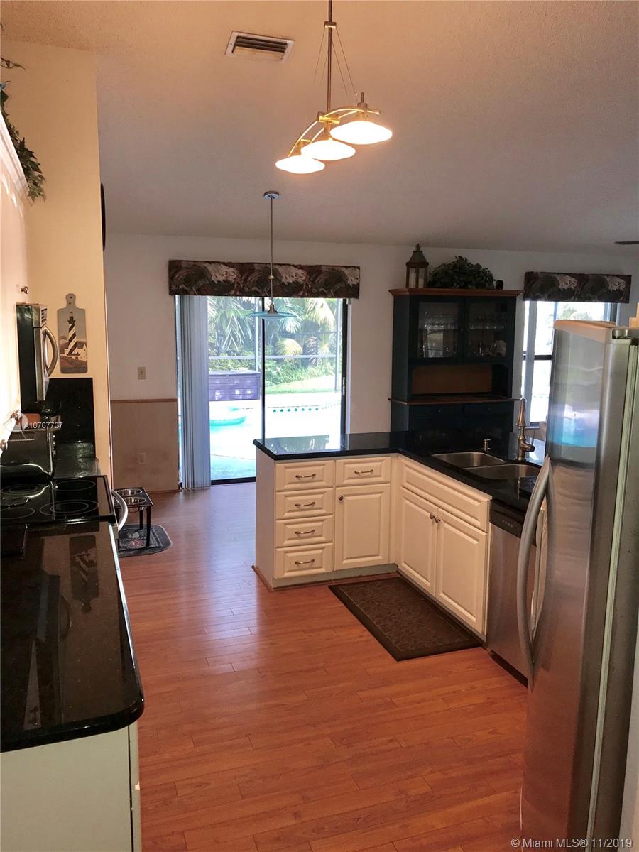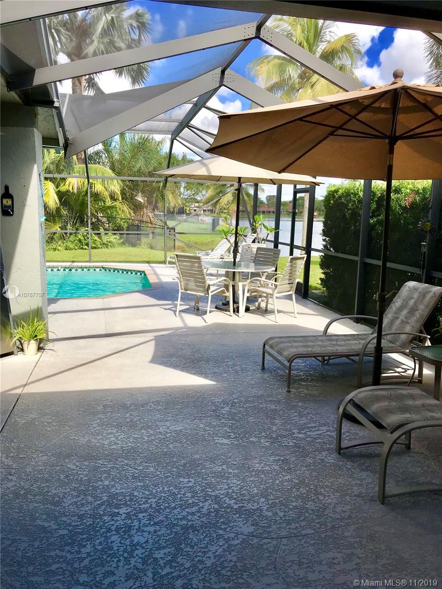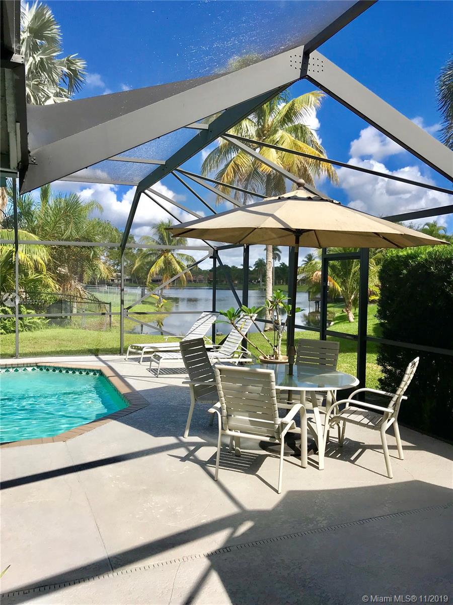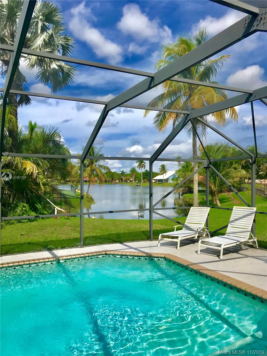 Rarely available, this gorgeous pool & waterfront home is a gem, located in sought after Country Address Encore, this centrally located community offers family living at its best, spacious floor plan includes 4 bedrooms, 3 baths, Living room, dinningroom, familyroom & large granite counter-top eat in kitchen, enjoy the beautiful lake & pool views right from your master bedroom, Living room, Familyroom and Kitchen. Love to entertain your family & friends, this beautiful home has an over sized covered patio with large screened in pool, BBQ's couldn't be better in this oasis with direct lake views! Original homeowner, newer A/C 2014, Salt water pool built in 2006, Strong Pool screen updated with Miami-Dade code, Hurricane impact Garage & Front Door, Accordion Shutters Throughout & newer Roof.