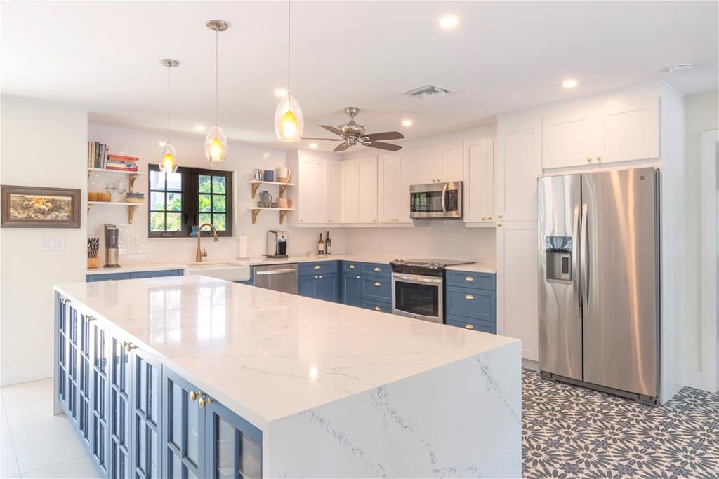 MUST SEE!! Beautiful, COMPLETELY RENOVATED HOME with a lot of character. This is an ideal home for entertaining! The interior features GENEROUS OPEN LIVING SPACES with 21 feet VAULTED CEILILNGS, a GOURMET KITCHEN with high-end appliances, QUARTZ COUNTERTOPS and top-of-the-line OMEGA CABINETS. THREE LARGE BEDROOMS ALL FEATURE EN-SUITE BATHROOMS. A bonus/study room could easily be converted back into a fourth bedroom. Amazing high impact COLONIAL WINDOWS and FRENCH DOORS. ROOF 2017. The stunning backyard boasts an OVERSIZED 8.5 FEET DEEP SALT WATER POOL, a large PERGOLA, LUSH LANDSCAPING and a MOSQUITO MISTING SYSTEM. In addition, there is a fabulous FIREPLACE, two washer/dryers on each side of the home, and 3 additional storage rooms.