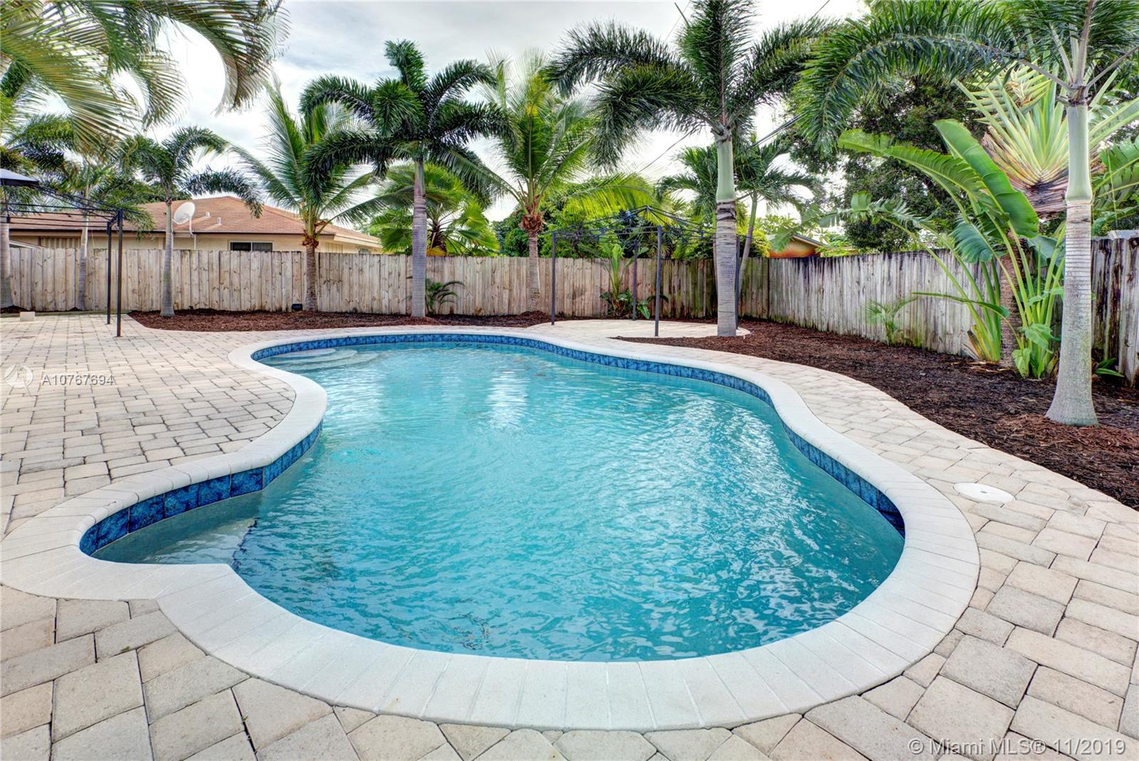 Come fall in love with this Charming Home with Gorgeous Resort Style Pool nestled on an oversized Private Corner Lot with plenty of parking for a boat. This gem features a bright open-concept floorplan and cozy layout perfect for entertaining. New Modern Kitchen with wood cabinets & Corian Countertops & High-end Stainless-Steel Appliances. The windows have Hurricane Panels & the French Doors are Impact Resistant & provide an elegant look and great natural light. The Master Bedroom has a custom built-in closet system. The A/C is Brand New and high-efficient. Brand new 200-amp electrical service panel. The interior and exterior have been freshly painted. This home shows the true pride of ownership and is an amazing bang for the buck. Don’t miss out on this amazing opportunity!