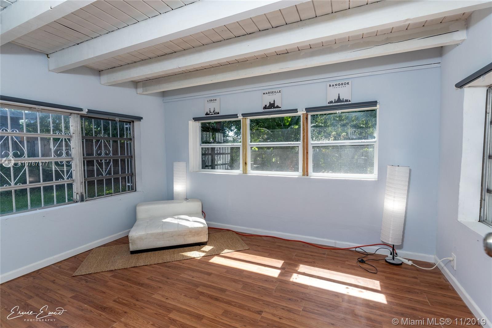 Newly renovated, beautiful 3 bedroom, 1 bath with office cove on quiet street in North Miami Beach. Brand new stainless steel appliances and energy efficient home. Lots of windows and light, Brand new AC, all new electrical panel, plus a new mini split unit for the back bedroom. Plumbing exists for a 2nd bathroom conversion in office cove. Beautiful exposed 12' wood ceilings, washer, dryer, great location, jogging trail, lime and mango trees. Close to I-95, shopping, parks and restaurants.