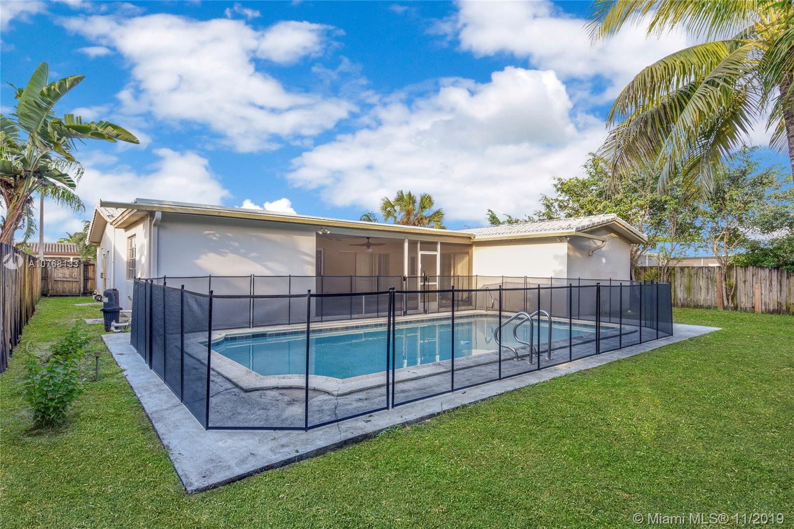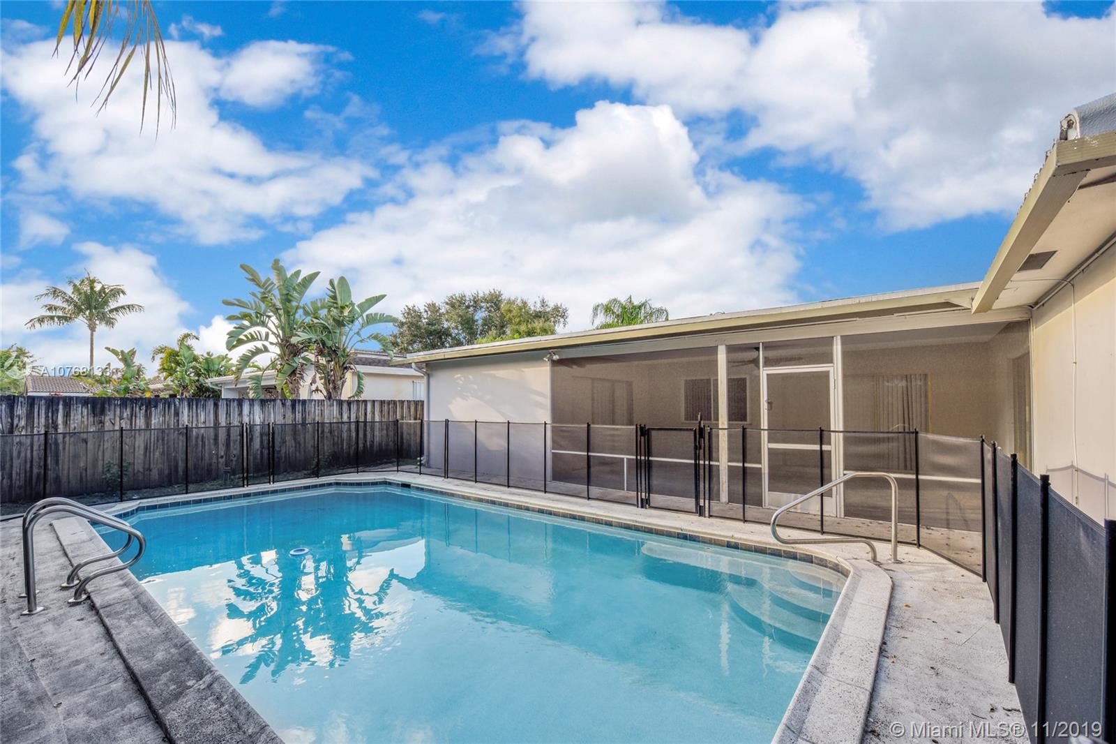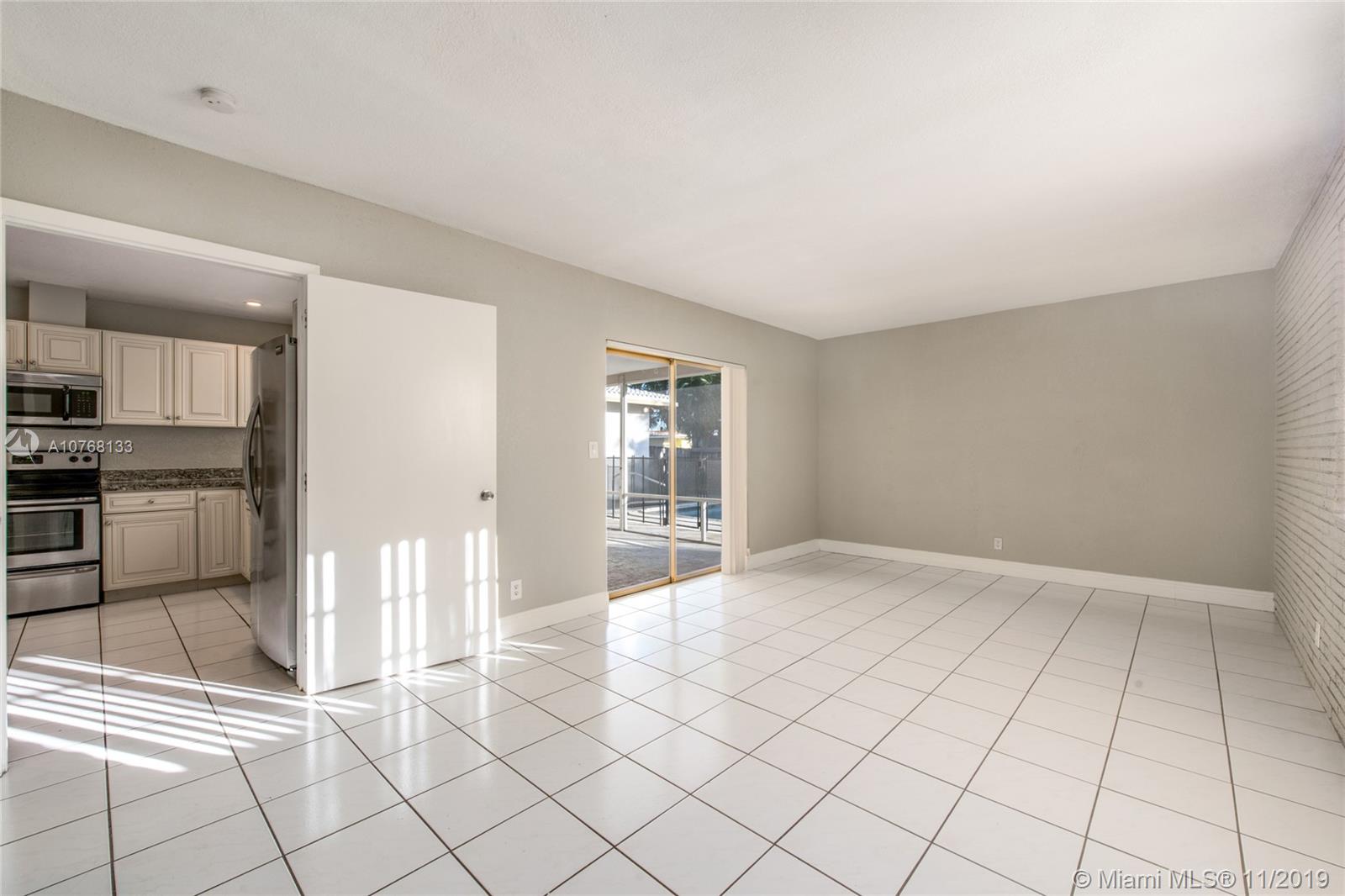 This beautiful property offers an array of features anyone will be sure to love. Great open living space as soon as you walk in, exquisite kitchen with stainless steel appliances, ample cabinet and counter space and room for an island if you wish, formal dining room, spacious bedrooms, sufficient closet space throughout, full size garage, washer and dryer, and a wonderful backyard with a covered and screened patio, gorgeous pool, and amazing space for gatherings with family and friends! Perfect location! Ina lovely residential community of Hollywood with no HOA and nearby everything you need. No need to look any further, your dream home is here!