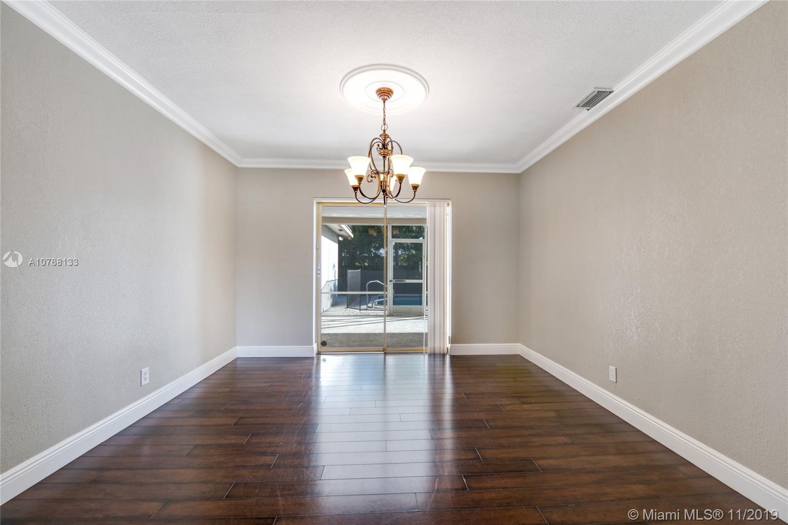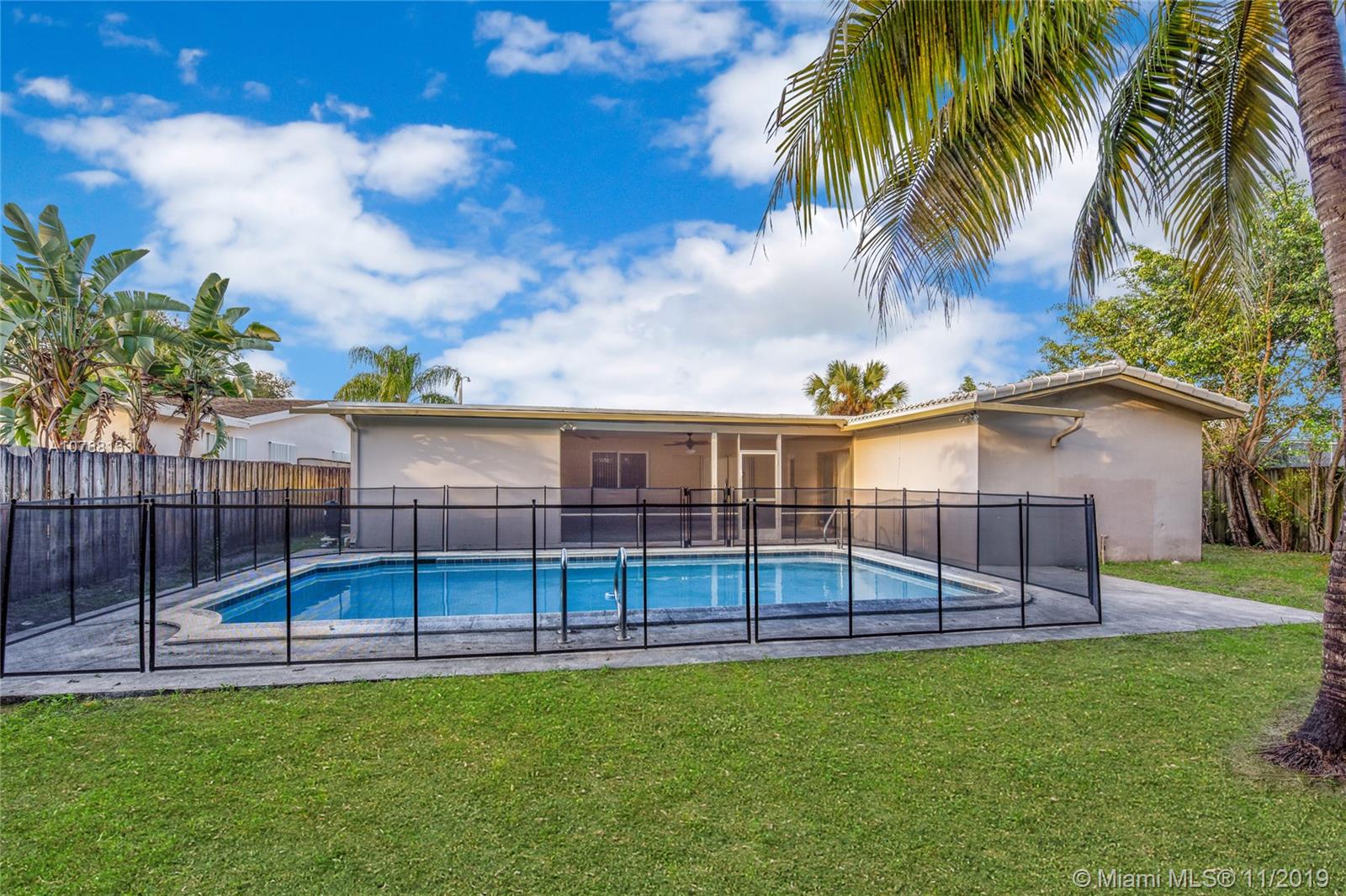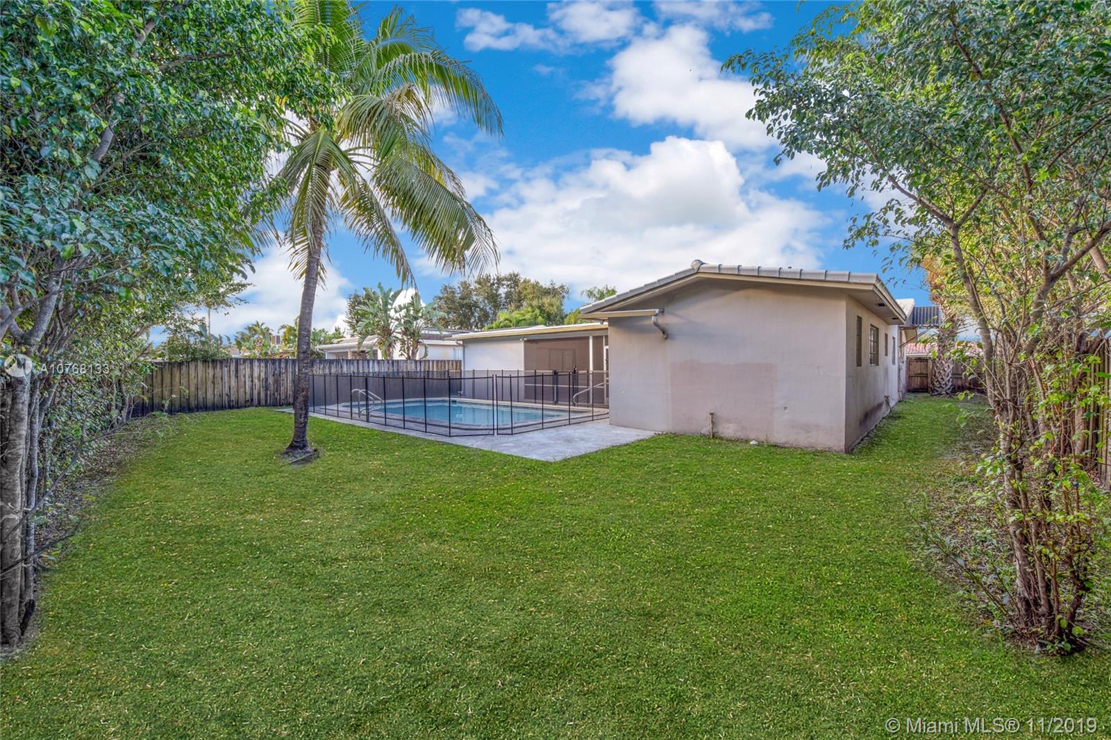 This beautiful property offers an array of features anyone will be sure to love. Great open living space as soon as you walk in, exquisite kitchen with stainless steel appliances, ample cabinet and counter space and room for an island if you wish, formal dining room, spacious bedrooms, sufficient closet space throughout, full size garage, washer and dryer, and a wonderful backyard with a covered and screened patio, gorgeous pool, and amazing space for gatherings with family and friends! Perfect location! Ina lovely residential community of Hollywood with no HOA and nearby everything you need. No need to look any further, your dream home is here!