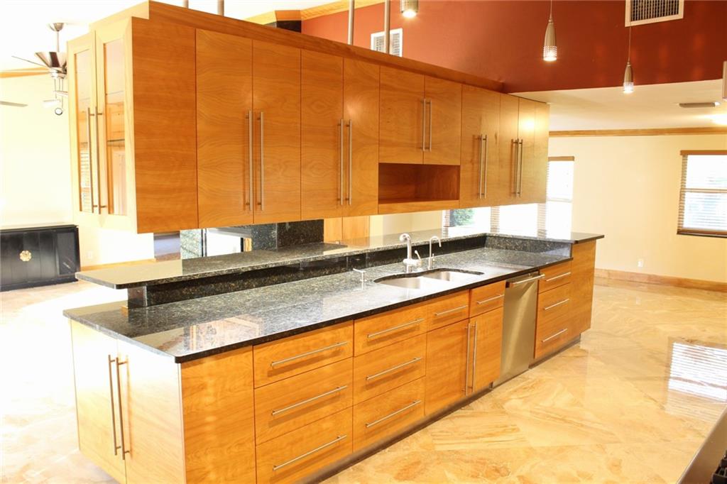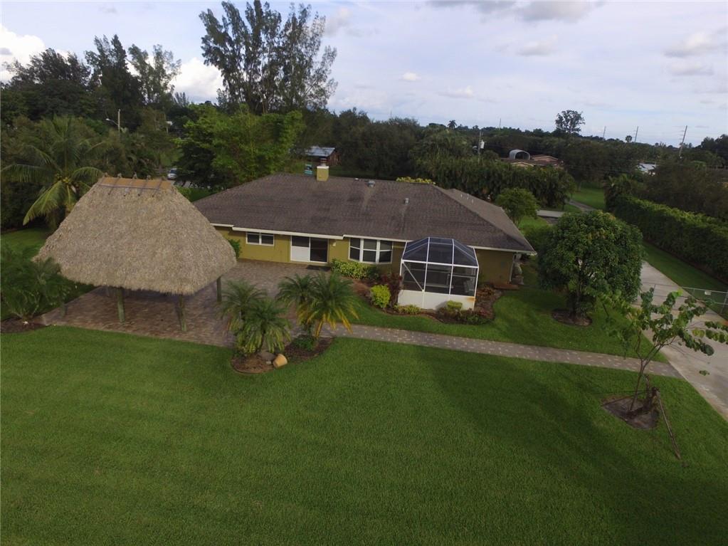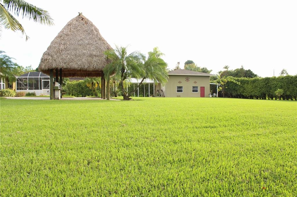 Come see this luxuriously updated home on over an acre of pristine land lined with fruit trees. Thekitchen is a chef's dream with a high-end Wolf gas range with infrared gas grill and commercial grade hood vent. The cabinets are custom built from the same tree with continuous grain flow from door to door. Marble floors throughout the living area with a granite double-sided fireplace. Marble master en suite from ceiling to floor and the shower has more jets and shower heads than you could ever dream of. Spend quality time relaxing or hosting parties under the oversized tiki hut. Property is fenced all the way around the backyard. There's an attached 2 car garage and a separate out building with parking for a boat and RV, both inside and out. No HOA! Come make this amazing home yours today!