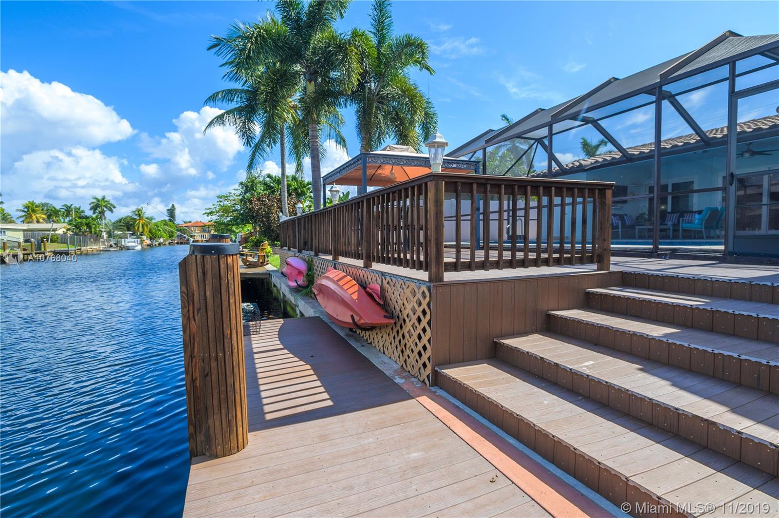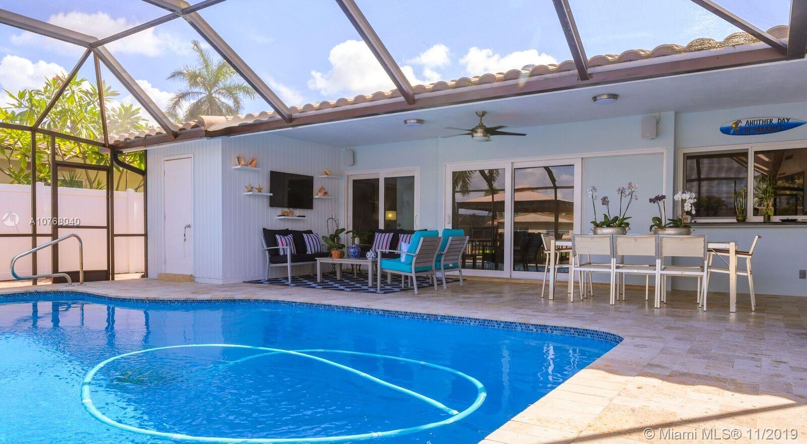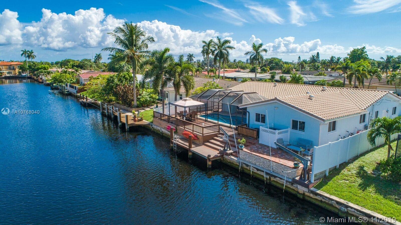 A Coral Ridge Isles STUNNER! This Fabulous Waterfront Home has 4 Spacious Bedrooms with Generous Closets and 2 Updated Bathrooms. Expansive Kitchen Overlooking the Heated Pool and Water Views. Live the Outdoor Lifestyle, enjoying the Screened-in Pool and Patio area year round. Extensive Deck for Entertaining with Large Dock and Boat Lift for up to 12,000lbs. 75ft of Waterfront with Direct Ocean Access. Impact Windows, Doors and Great Full Fold-In Sliders. Newer Roof, Newer AC, Tank-less Water Heater. Extended 2 Car Garage. Square Footage Per Seller Information - 2457sqft Living Area