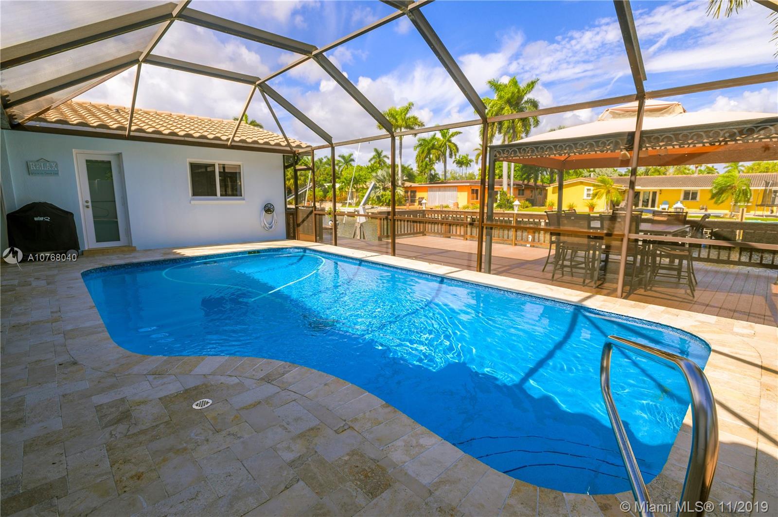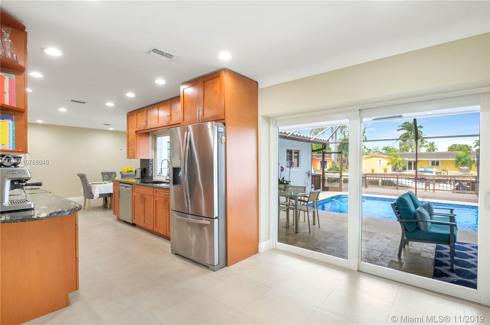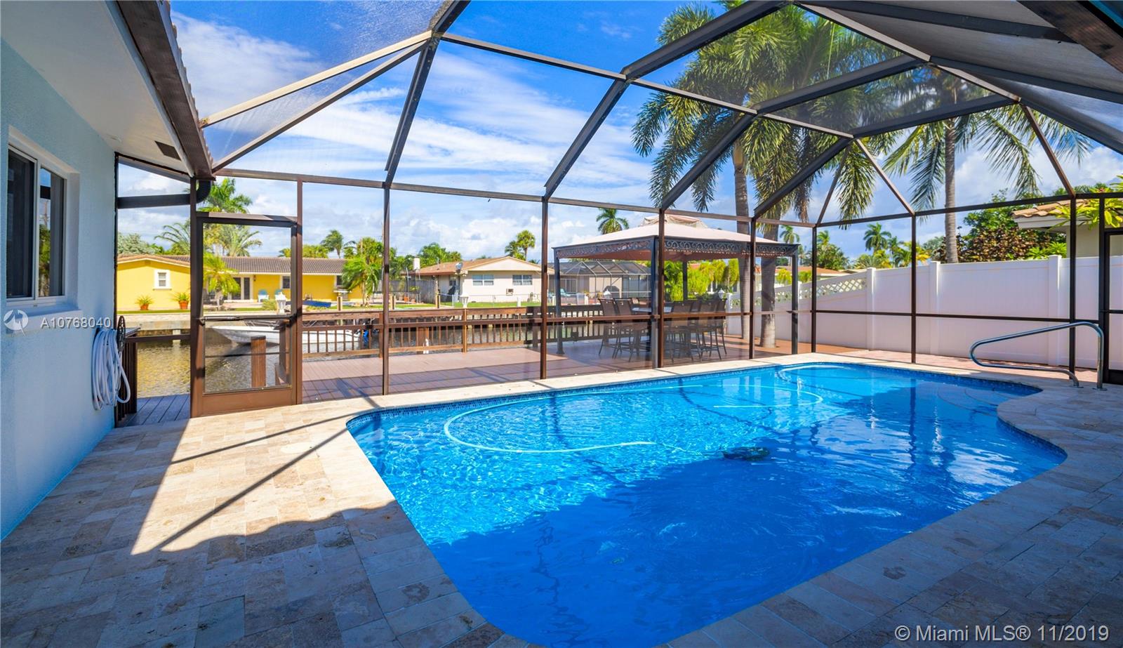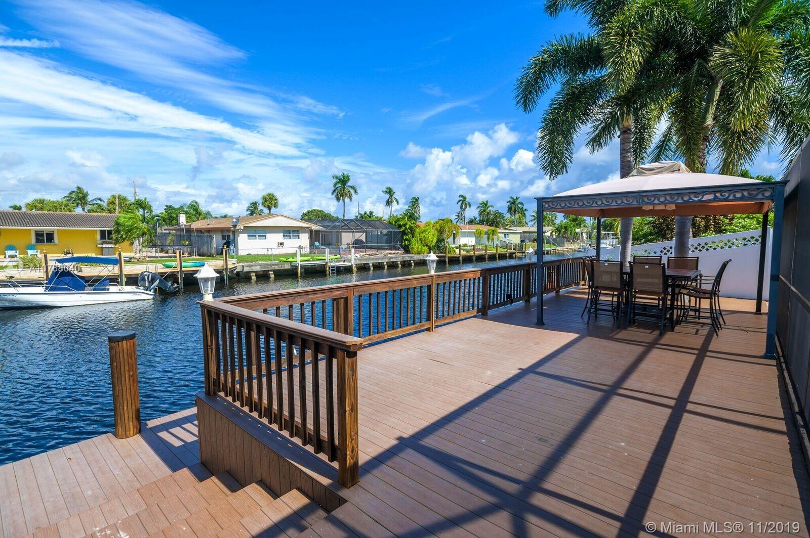 A Coral Ridge Isles STUNNER! This Fabulous Waterfront Home has 4 Spacious Bedrooms with Generous Closets and 2 Updated Bathrooms. Expansive Kitchen Overlooking the Heated Pool and Water Views. Live the Outdoor Lifestyle, enjoying the Screened-in Pool and Patio area year round. Extensive Deck for Entertaining with Large Dock and Boat Lift for up to 12,000lbs. 75ft of Waterfront with Direct Ocean Access. Impact Windows, Doors and Great Full Fold-In Sliders. Newer Roof, Newer AC, Tank-less Water Heater. Extended 2 Car Garage. Square Footage Per Seller Information - 2457sqft Living Area